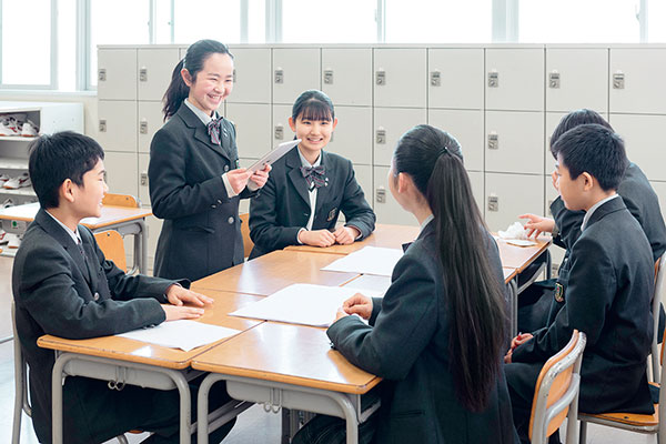 中学校では、担任を日本人教員、副担任をネイティブ教員が担当。ホームルームでは、日々の伝達事項を副担任が英語で伝えます。放課後や休み時間も、常にネイティブ教員とコミュニケーションを図ることで、次第に英語に耳が慣れ、理解できるようになります。
