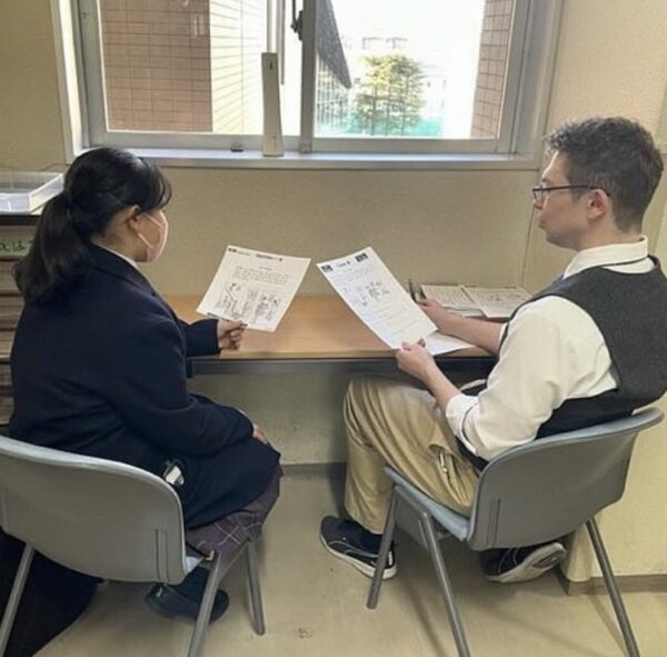 英会話の授業は、日本人の教員とネイティブ教員のペアで進められます。