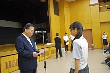 2013年7月20日(土)。スチューデントホールにて1学期終業式が行われました。体力テストでの優秀者、テニス、アーチェリーでの優秀な成績をおさめた生徒が表彰されました。その後校長先生から一般の方から感謝された高校生の行動のお話があり、教頭先生から夏休みの過ごし方についてのお話がありました。 また来週から 夏期補習1次が行われます。