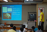 11月19日、近畿大学水産研究所の家戸啓太郎先生にお越しいただき、マグロの生態や完全養殖に成功するまでのエピソードなどをお話しいただきました。また、養殖技術の向上についてご指導いただきました。 |