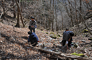 生物部昆虫研究班は、奥多摩の山中を訪れ、生きた化石として知られるガロアムシの観察を行いました。観察を初めて間もなく、たいへん珍しいガロアムシの成虫の観察に成功しました。その他、絶滅危惧に指定されているオオケマイマイの生育も確認するなど思いがけない発見もありました。 |