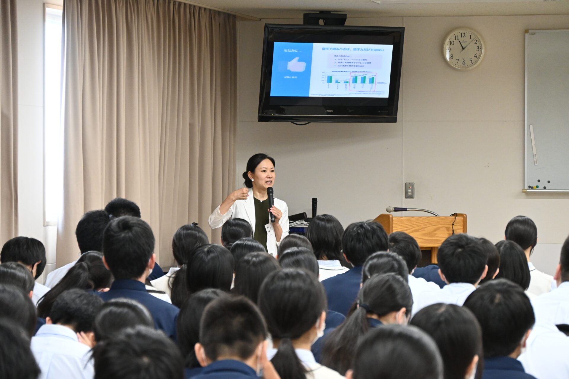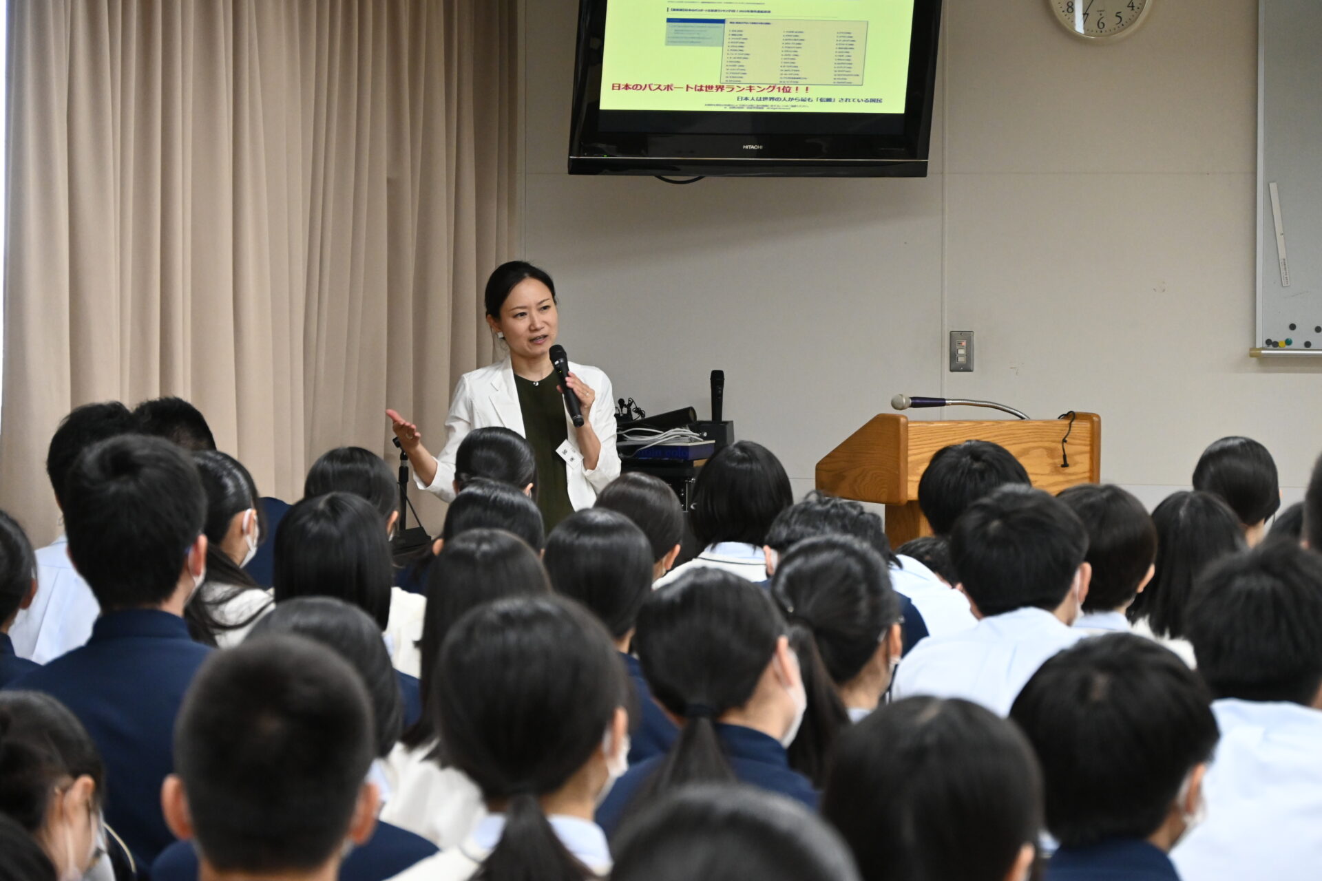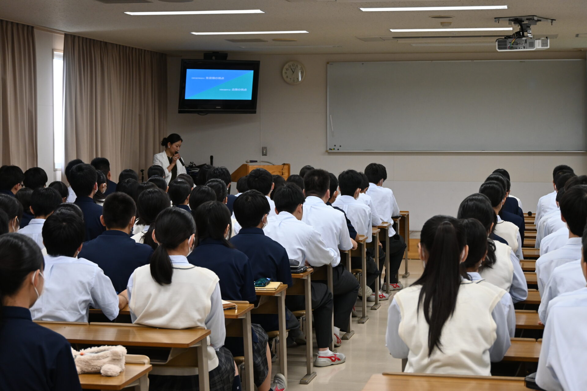 2023年7月18日(火)に留学情報館の長者原亜弓氏より海外大学スカウト制度の説明会を4・5年生対象に実施しました。これは昨年度より始めている海外大学進学支援プログラム「Study Abroad Plus(SAP)」の取り組みの一つとして導入したものです。現在の英語力と成績でどのくらいのレベルの海外大学に進学できる可能性があるのか。それを知ることで、生徒たちは日本の大学への進学だけに囚われず、幅広い進路選択を持て、英語の学習意欲がさらに向上していくと思います。「海外の大学も志望校の一つになった。サポートシステムを利用するほか、英語力を上げ、どこにでも目指す準備をしたい」と参加した生徒は意気込みを新たにしていました。