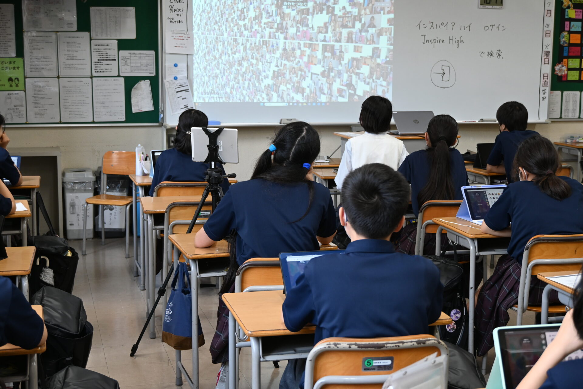 2023年7月より中学生対象に探究学習プログラム「Inspire High」を導入しました。このプログラムを通して生徒たちは世界中で活躍する大人(ガイド)と共に「答えのない問い」について考え、同世代で意見を共有し合う体験を得ることができます。タブレットを用いながら、学びに向かう生徒たちは好奇心旺盛。最初のセッションは「なぜ勉強するのか」以下はこの問いに答えたゲストの考えに触れた生徒の感想です。「勉強する意味が『大人になったから後々好奇心に繋がり、世界を鮮やかにする』と言うガイドの答えにびっくりしました。私は勉強は大人になった時に必要なのか?と考えたりしていましたが、こんな考えもあるのかと気がつきました。これから自分の興味がある物をもっと知りたくなりました。」Inspire Highでは刺激的な時間が訪れます。