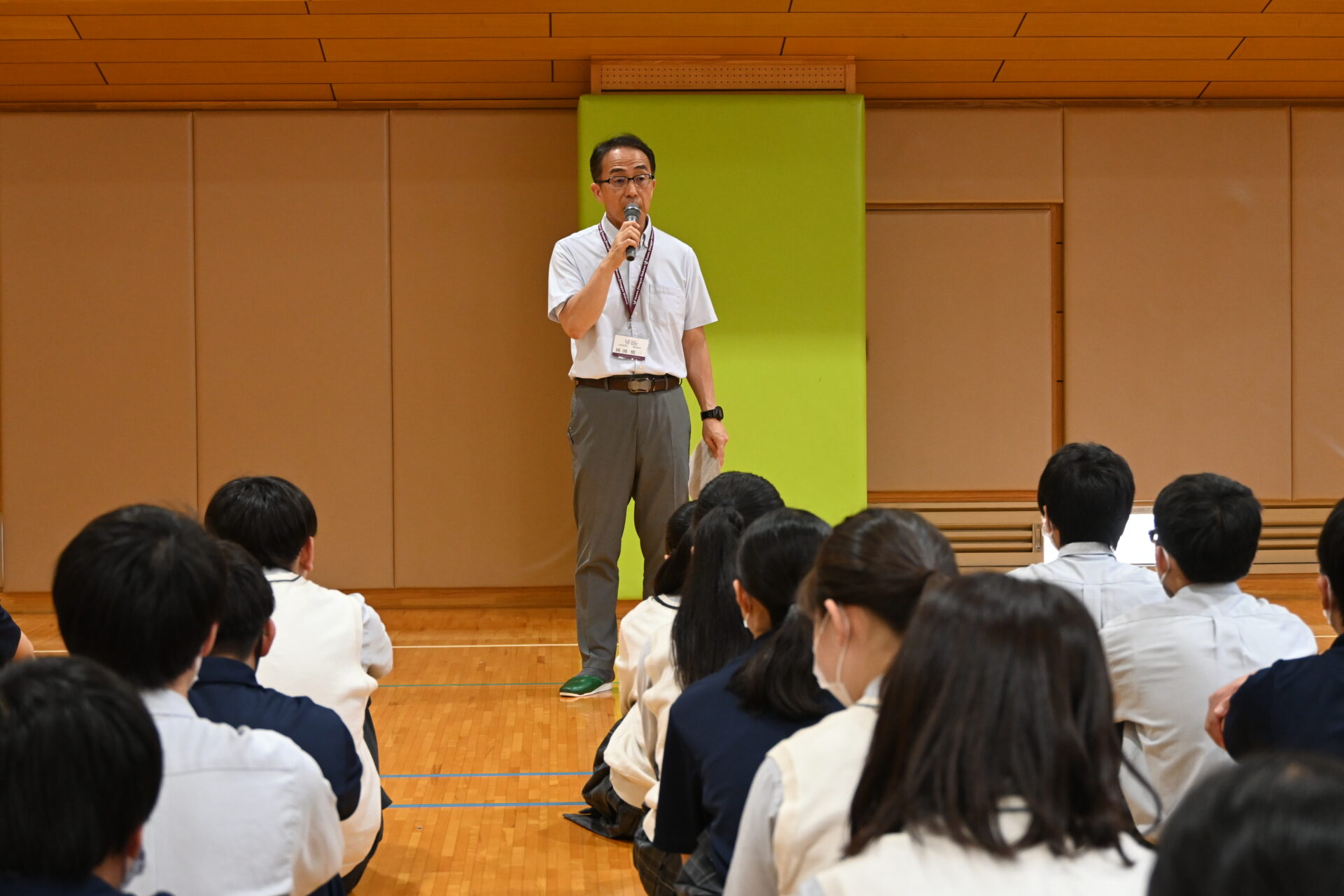 2023年7月20日(木)に第1学期終業式を実施しました。大会やコンクールなどで優秀な成績を収めた部活動、生徒への表彰式の後、岡田慎一校長は「1学期を終えるにあたり、4月に伝えたこと。『勉強の目標、ルールとマナーを守る、美しい言葉を使う』この3点ができていたかどうか、自身の成長を振り返ろう。そしてスマートフォンの使い過ぎに注意し、安全安心な生活を心掛け、この夏を過ごして欲しい」と伝えました。この1学期、本校の教育活動にご理解、ご協力をいただけました多くの皆様に感謝申し上げます。
