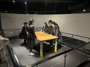 2023年11月16日(木)に中学3年生が池袋防災館で防災学習を実施しました。「防災に関する理解、知識を深め、いざという時の備え方を身に付けることの重要性を再認識する。」日々心に留めなくてはならないことですが、「身近にある非常設備に目を配るようにしたい」、「学習前に比べて防災を意識するようになった」といった感想から生徒たちはこの体験の意義を理解していました。