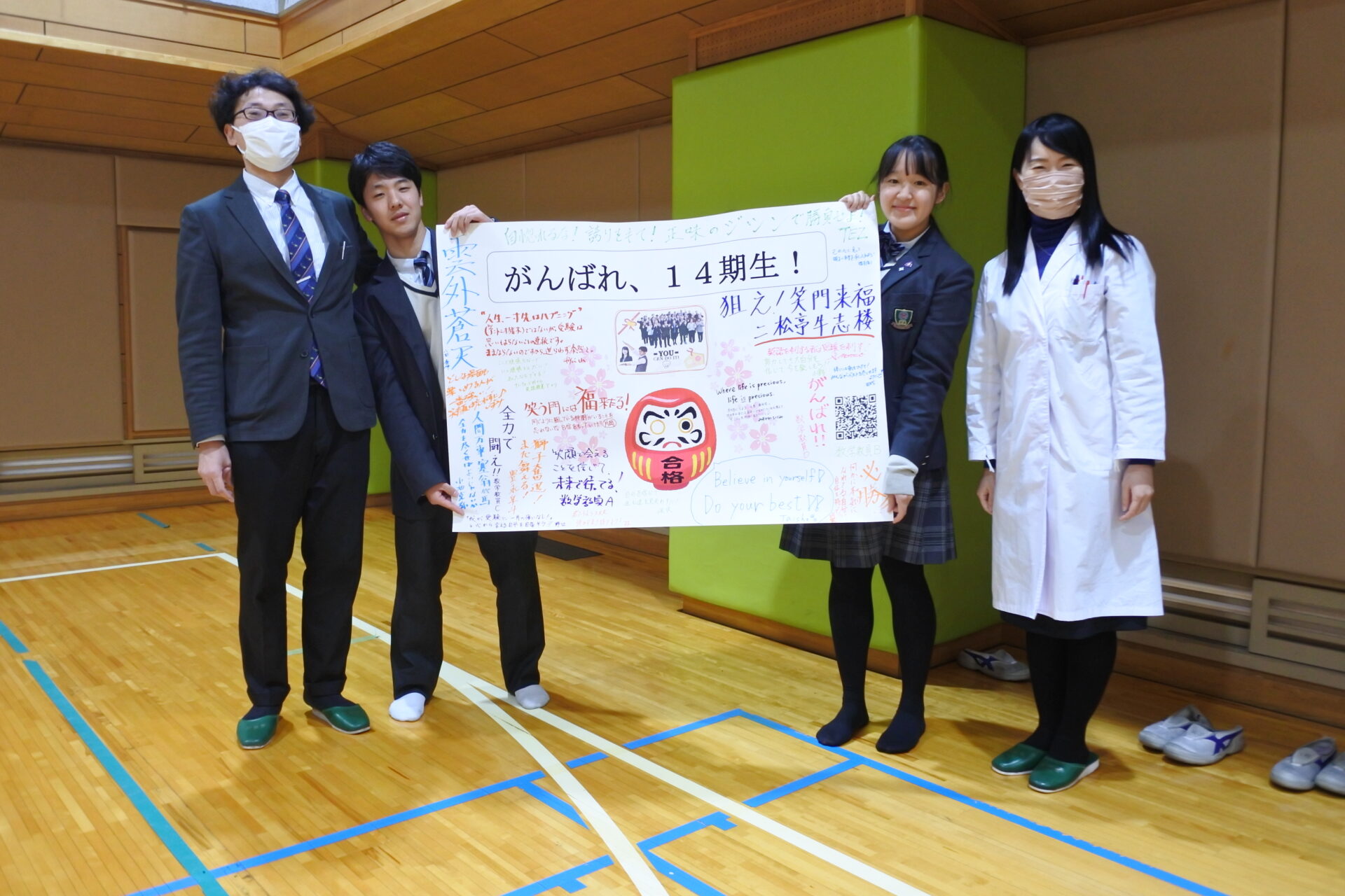 2023年12月22日(金)に14期生の壮行会を実施しました、いよいよ大学入試の一般選抜を迎えるにあたり、15期生・16期生の後輩たちからエールを送りました。「多くの人たちの声援を力に変えて、自分たちのやってきたことを信じ、よい結果を出したい」と14期生は力強く語ってくれました。14期生の皆さん、今までもこれからもずっと応援しています。健闘を心から祈っています!!