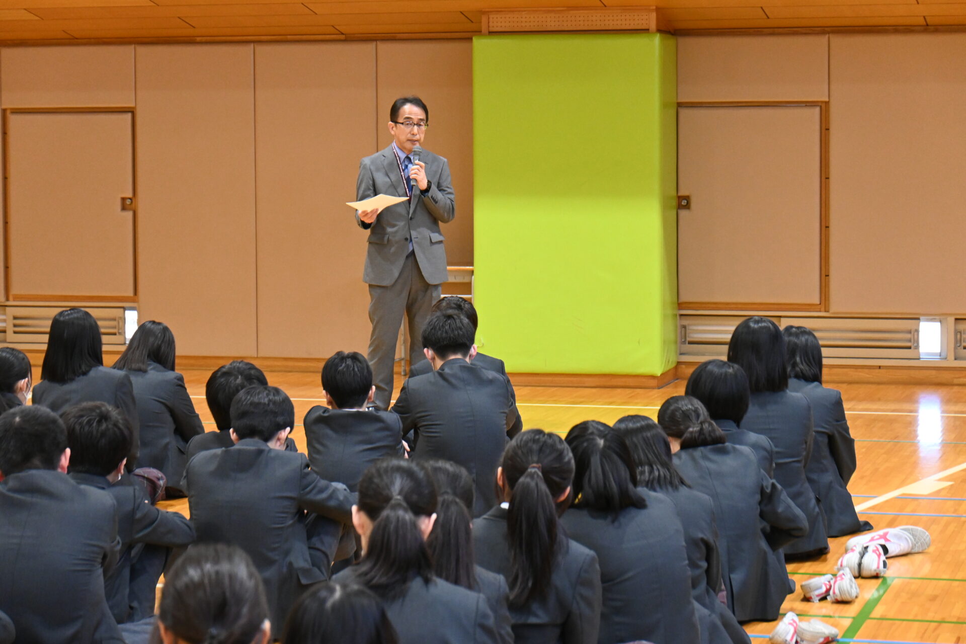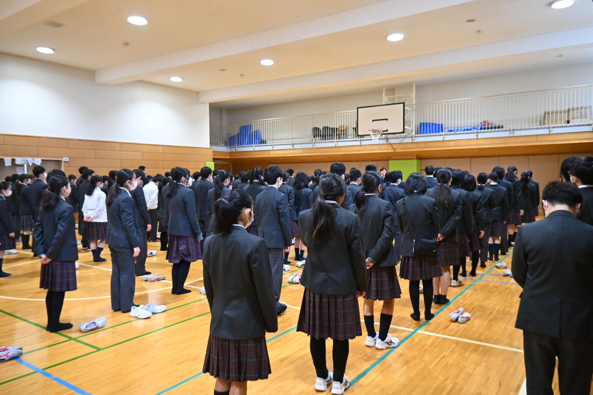 2024年3月22日(金)に中学校の第3学期終業式と保護者会を実施しました。部活動やコンクールなどの表彰の後、岡田慎一校長は年度の締めくくりに際し「年度変わりは環境が変化し、悩んだり、苦しいことがある。悩みは成長の始まりだが、一人で抱え込まずに周りに相談して欲しい」と生徒たちに伝えました。また、保護者会では各学年より学業や学校生活や関して今学期の振り返りをご説明しました。2023年度も多くの皆様にサポートいただき、教育活動を行うことができました。2024年度もどうぞよろしくお願い申し上げます。