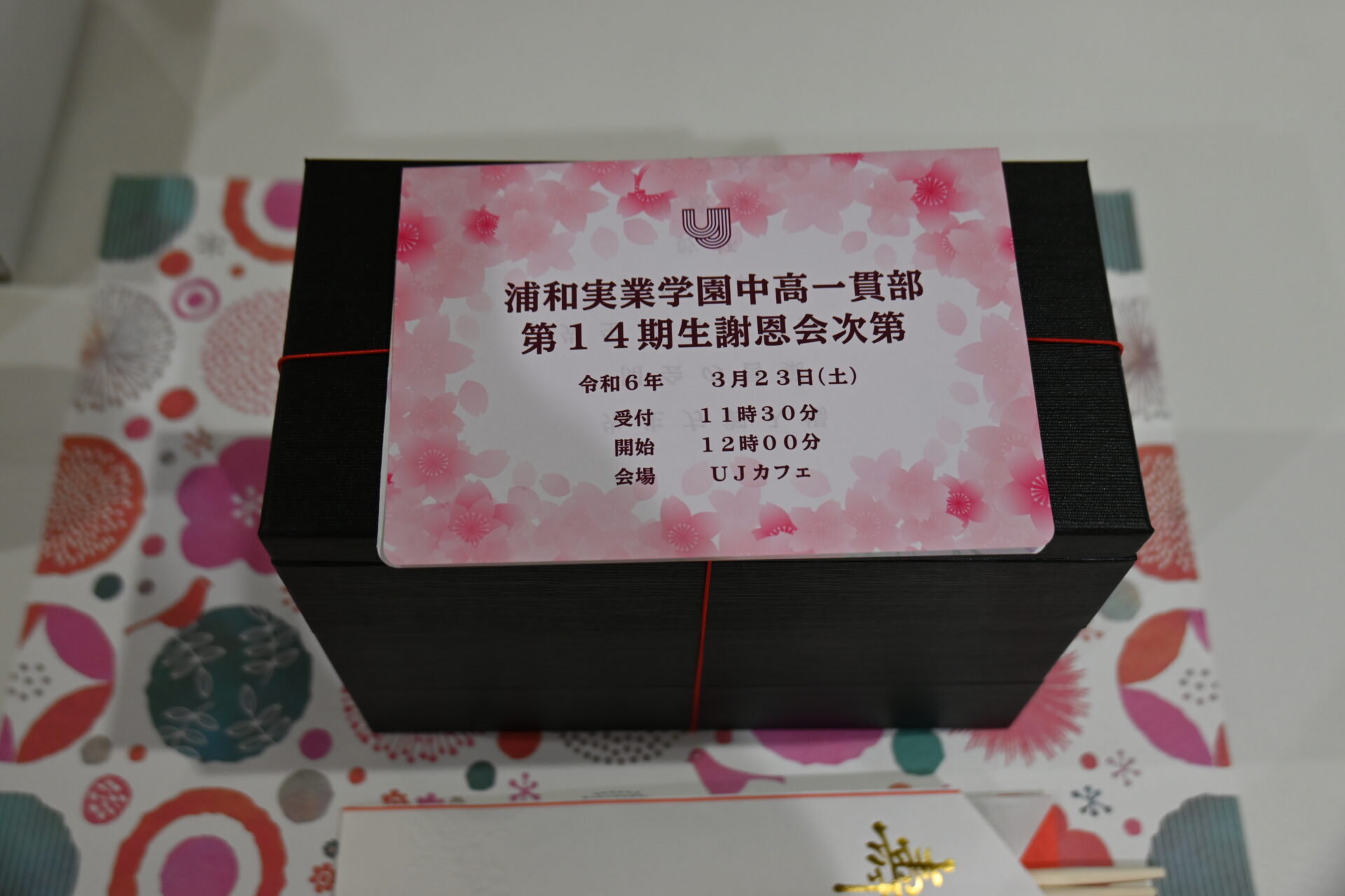 2024年3月23日(土)に14期生(2024年3月卒)の謝恩会を本校UJカフェにて実施しました。卒業式は3月1日(金)に行なわれましたが、国公立大学の合格発表が終えてない中でしたので、どことなく落ち着かない様子の14期生でした。昨日は各々進んでいく方向性が定まり、心から謝恩会を楽しんでいました。たくさんの保護者の方にもご参加いただき、6年間の「浦実生活」の思い出話に花を咲かせていました。14期生の皆さん、卒業してもみんなが過ごした学び舎に遊びに来てくださいね。