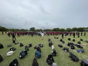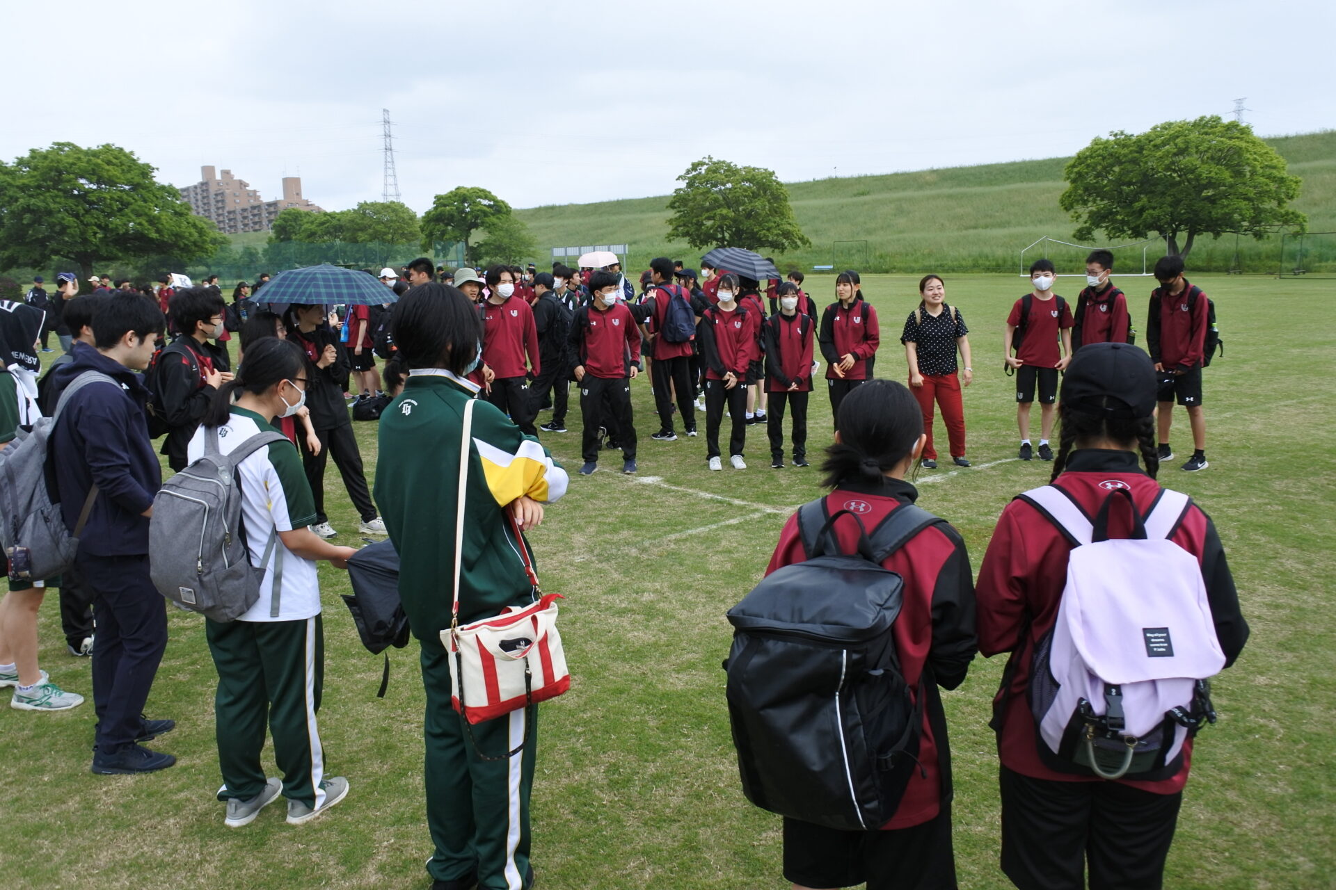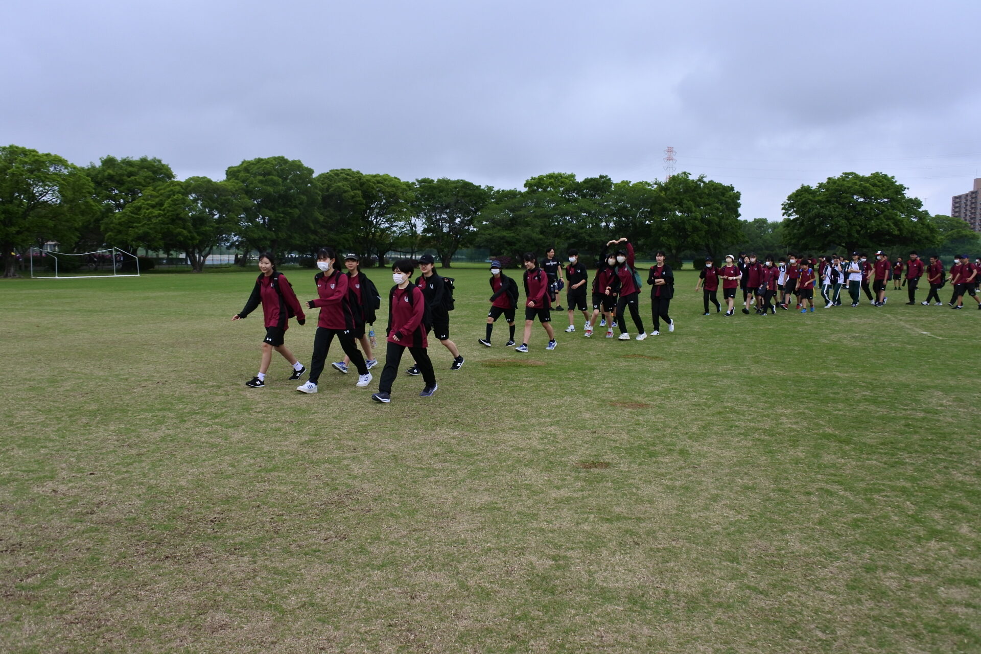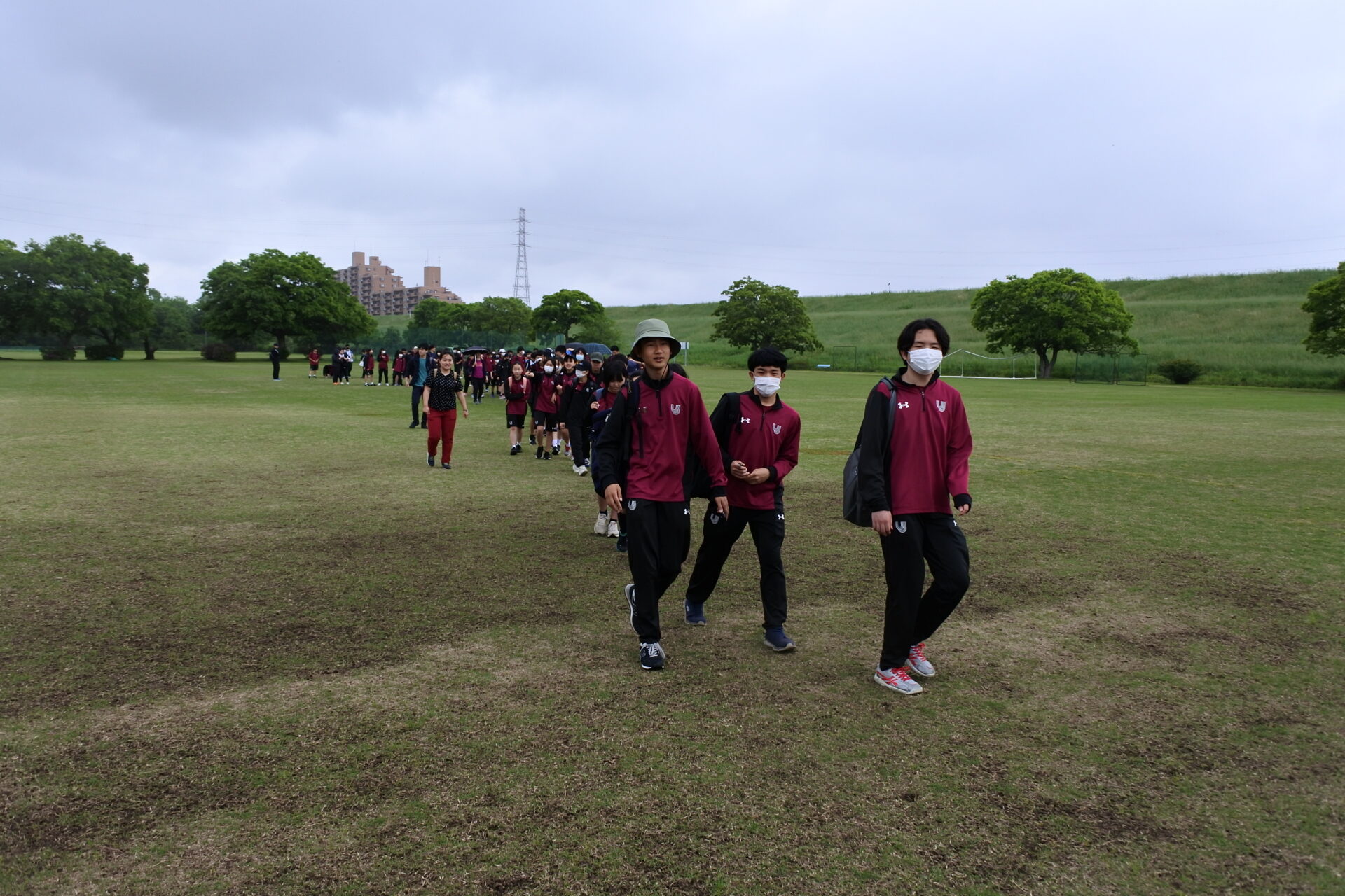 2024年4月30日(木)に強歩大会を実施しました。中学校1年生から5年生を各学年縦割りのグループとし、それぞれが本校彩湖グランドから荒川親水公園に向かい、折り返して彩湖グランドに戻ってくるまでの約14㎞を歩きました。万が一、災害が発生した場合に備えて自分の歩行力を知ることは大切です。また、上級生がリーダーとなり、下級生の様子に目配りができるのも一貫部だからこそ。曇天でしたが、3年ぶりに実施した強歩大会は生徒同士の絆を深めてくれました。