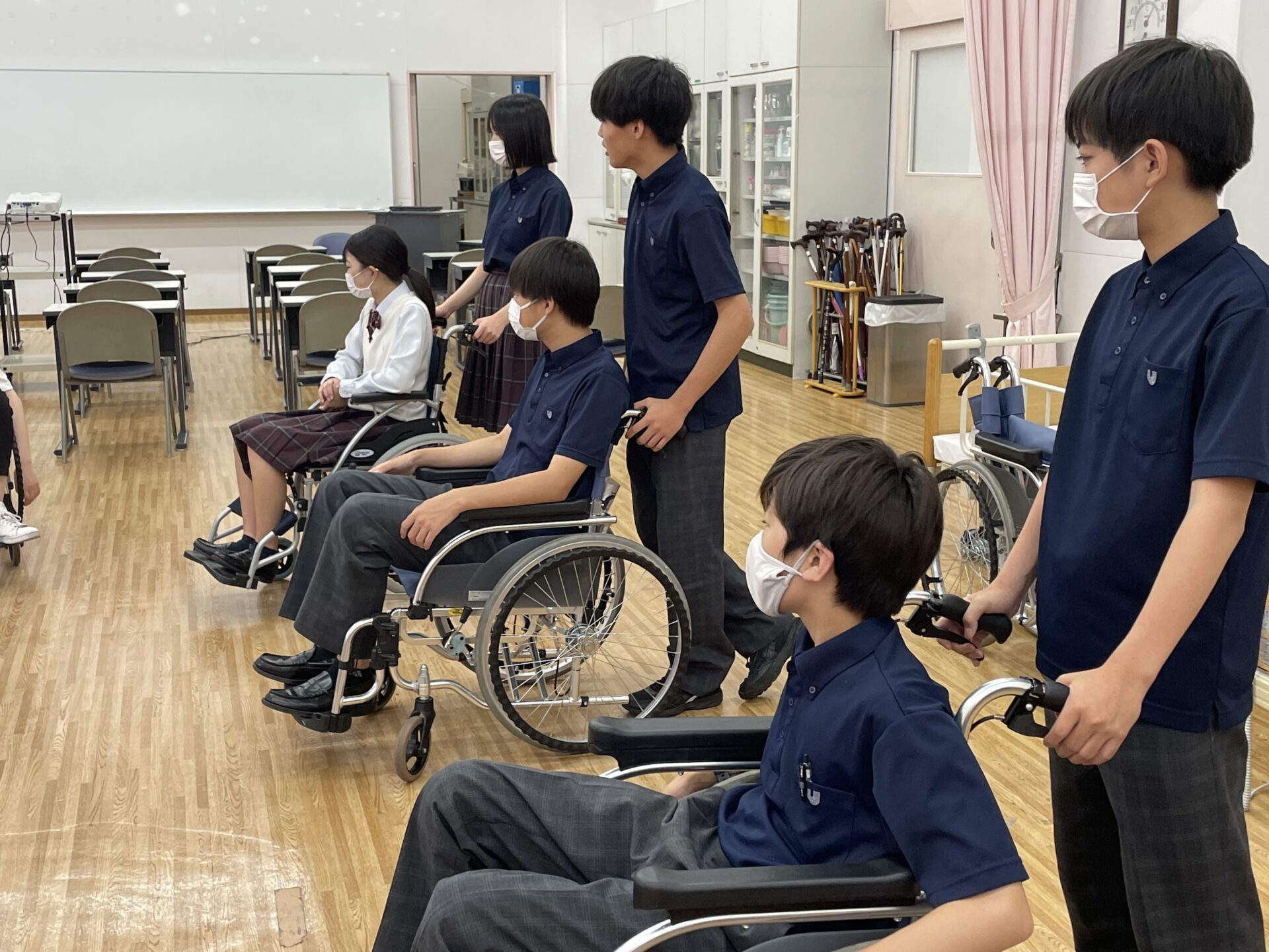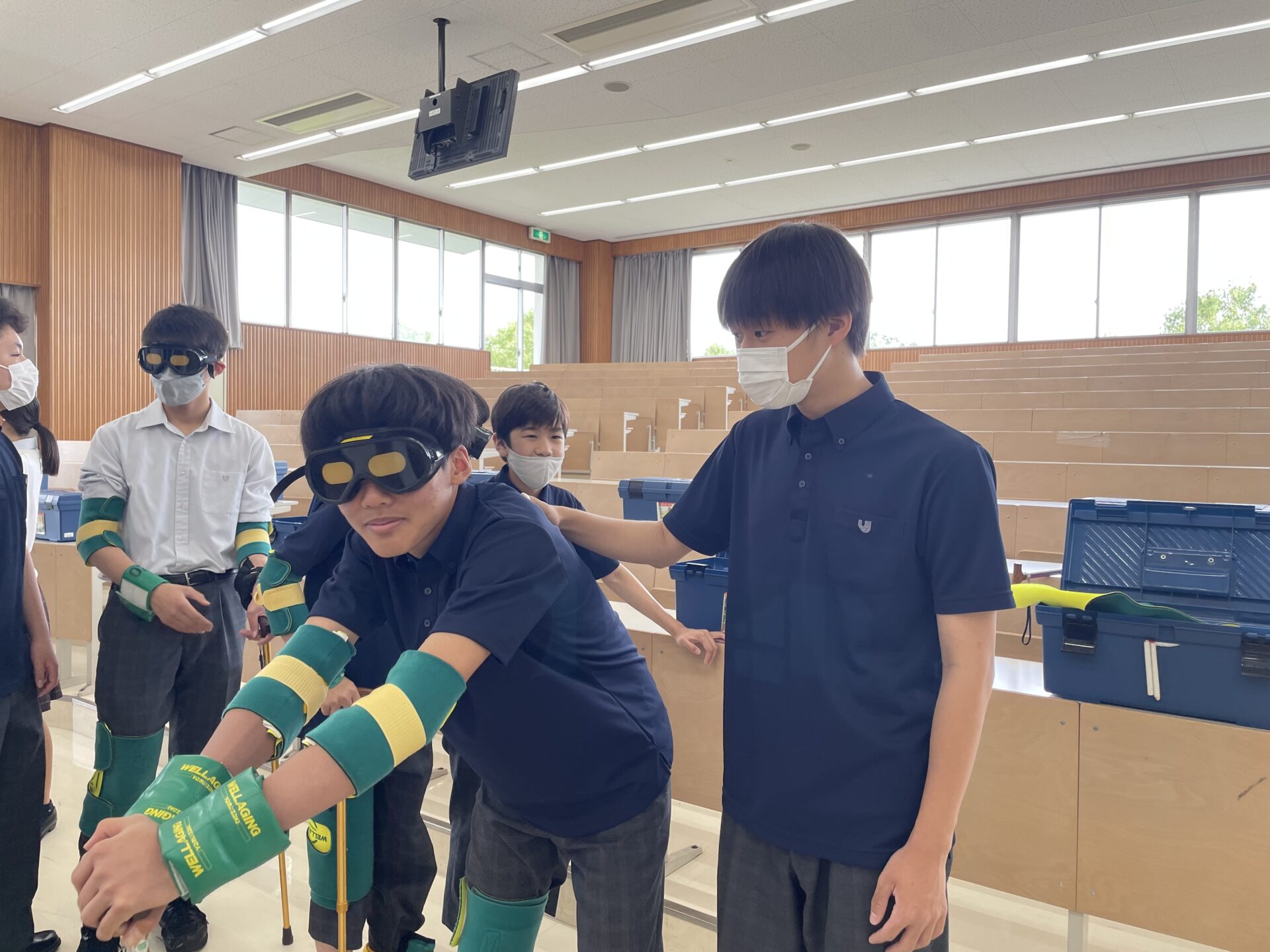 2024年6月20日(木)に本校の併設校である浦和大学(さいたま市緑区)で中学校2年生が福祉体験を実施しました。障がいや高齢に伴う心身の変化や、その生活を知ることは思いやりの育成につながります。体験を終えた生徒たちは「周りへの目配りをより意識するようになった」と話していました。