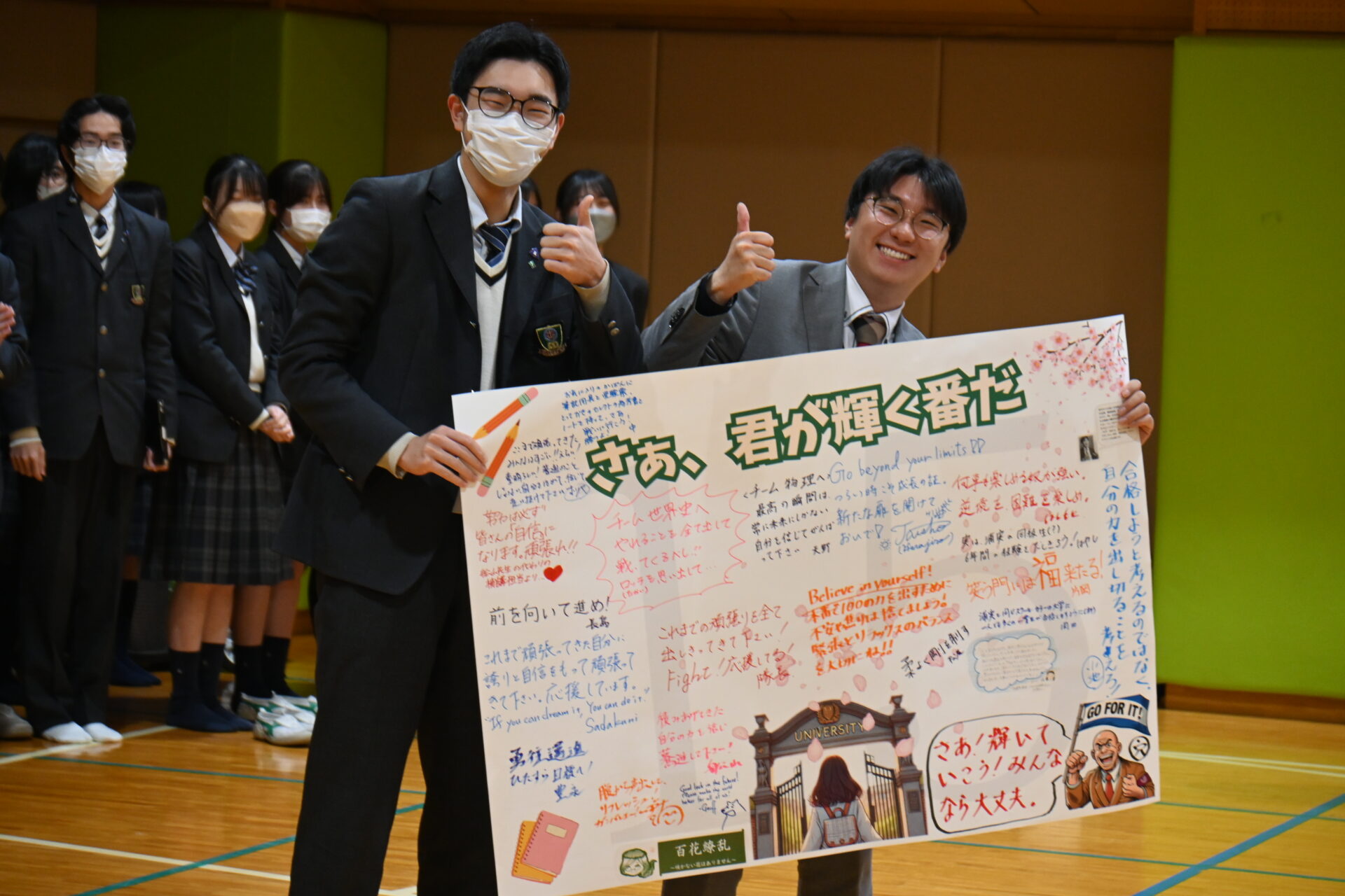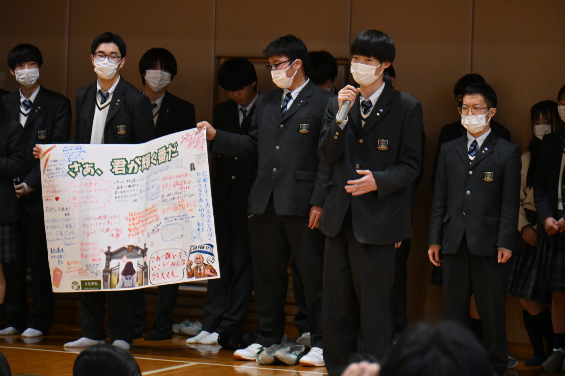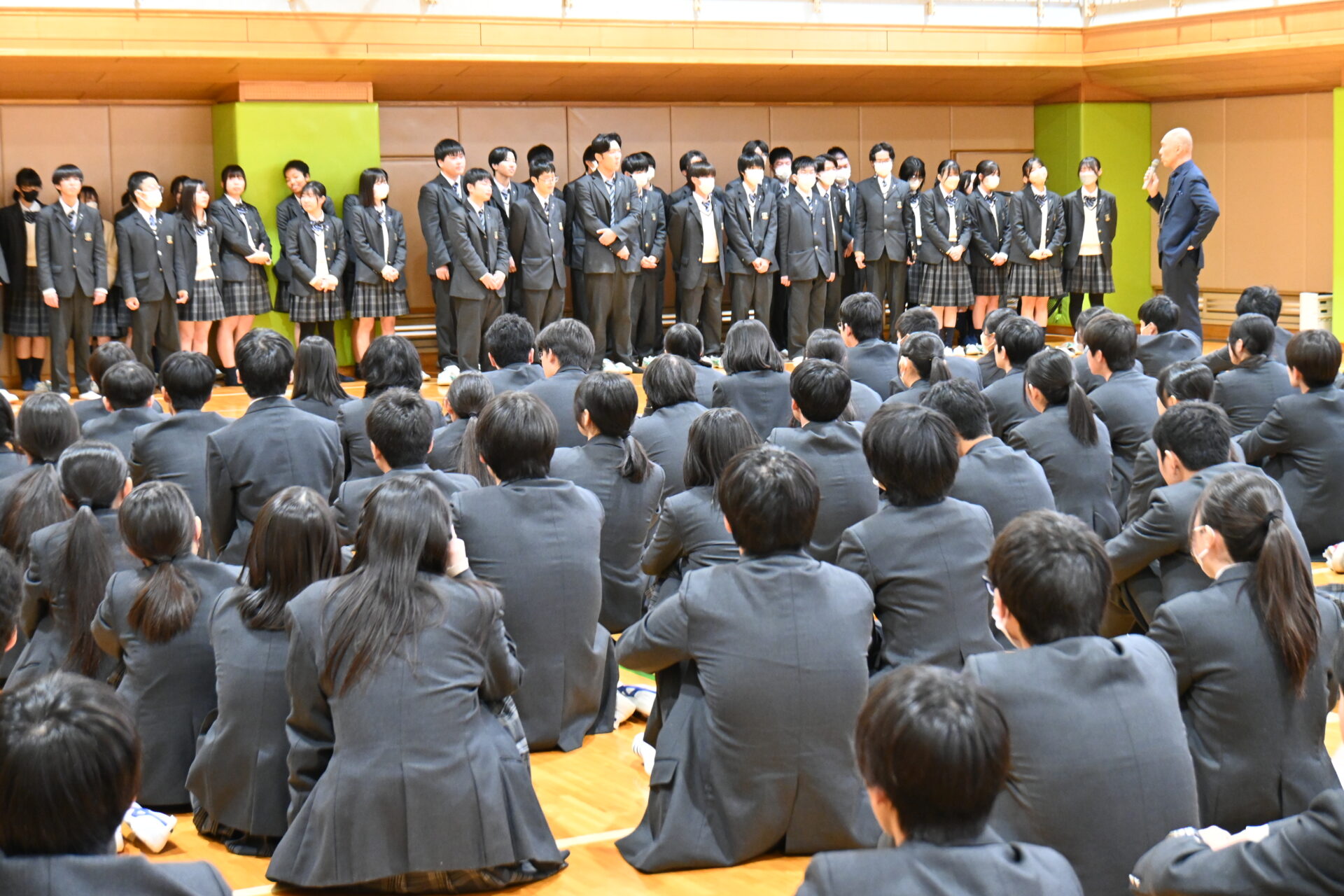 2024年12月24日(火)にまもなく受験本番を迎える6年生に向けて、壮行会を実施しました。4・5年生、教員からのエールを込めた寄せ書きを送りました。6年生代表の木下くんは「みんなに支えられていることに感謝し、よい結果が届けられるよう頑張ってきます」と決意を述べました。体調管理には十分過ぎるほど注意し、これまでの努力を信じ、自分の力を出し尽くしてください。6年生にどうか、どうか幸が届きますように。
