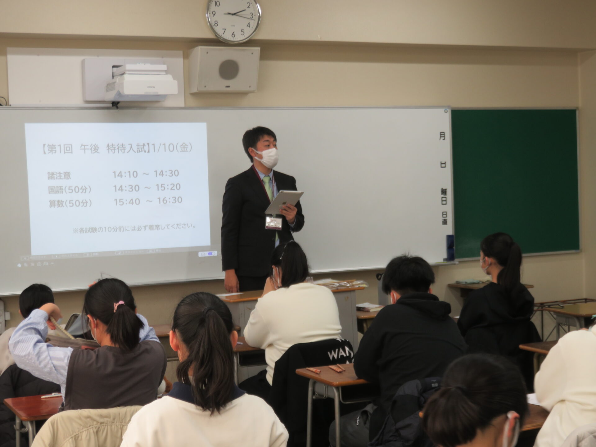 2025年1月10日(金)より入学試験が始まりました。寒空の中、緊張した面持ちで試験会場へと向かう受験生の皆さん。10日(金)第1回〈午前〉・〈午後〉特待入試、第1回適性型入試、12日(日)第2回〈午前〉・〈午後〉特待入試、17日(金)英語入試、19日(日)第2回適性検査型入試、25日(土)第3回入試が実施されます。体調を万全にし、自分の力を出し切って欲しいです。