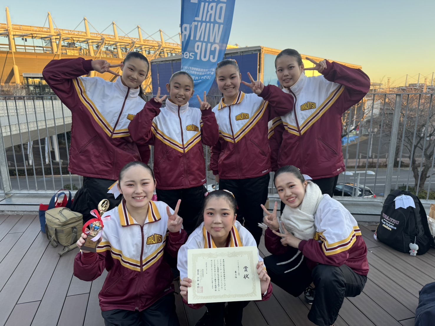 2025年1月11日(土)に武蔵野の森総合プラザにて「Dance Drill Winter Cup 2024」が開催されました。SONG/POM部門Small編成に中学生7名が出場し、第3位に輝くことができました。次回大会は2月1日(土)に行われる「USA Regionals 東京大会」です。この大会でも、よりダイナミックに良い演技ができるよう練習に励んでいきます。今後とも応援をよろしくお願いいたします。