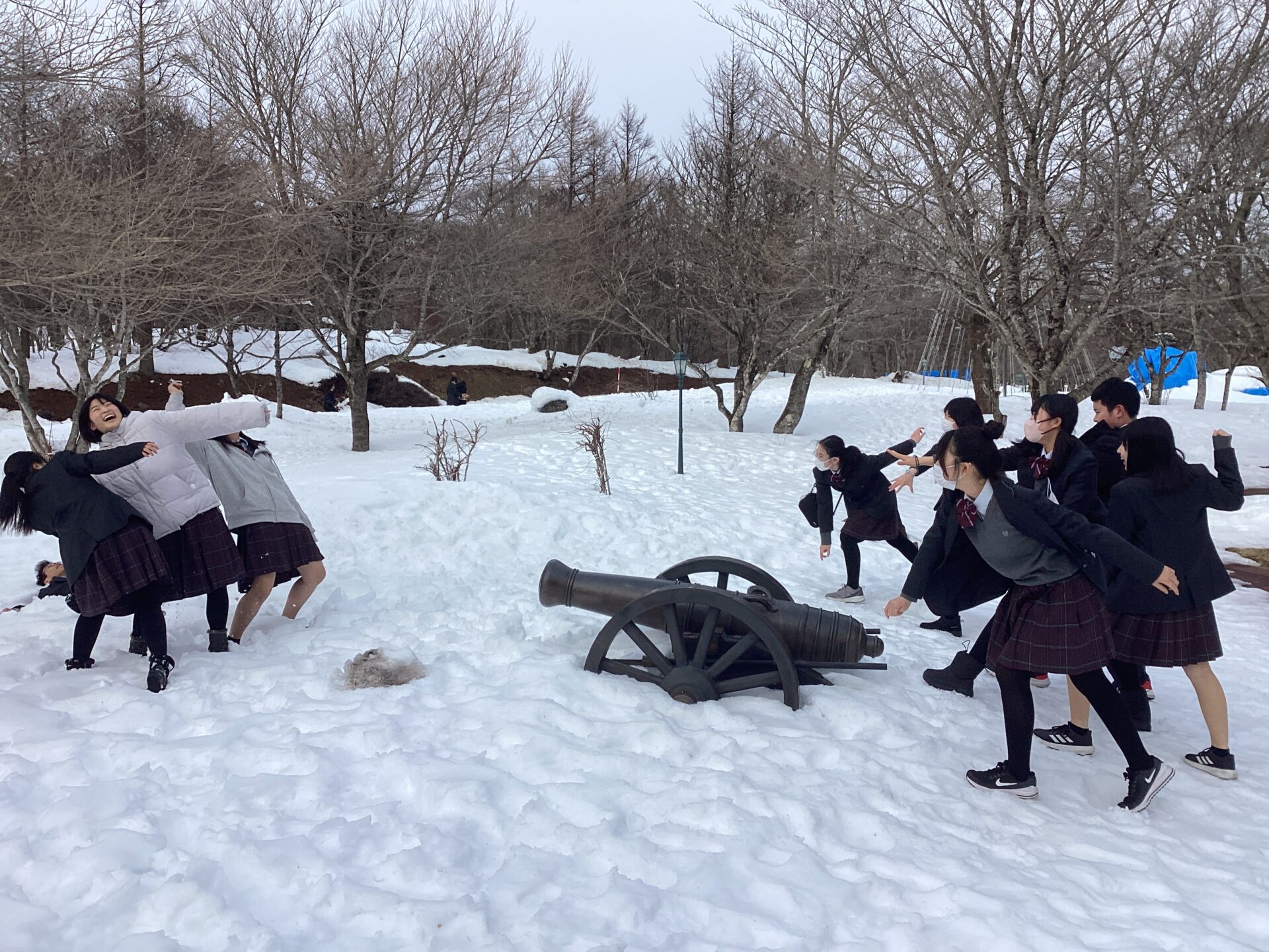 2025年1月22日(火)~25日(金)に中学2年生が福島県にある「ブリティッシュヒルズ」にて2泊3日の語学研修を実施しました。英語イマージョン教育で日常的にネイティブ教員と話している生徒たちは気後れすることなく明るく、現地のスタッフの皆さんと接していました。目の前に広がる銀世界に歓声を上げて、雪遊びに興じる姿は微笑ましく思えました。