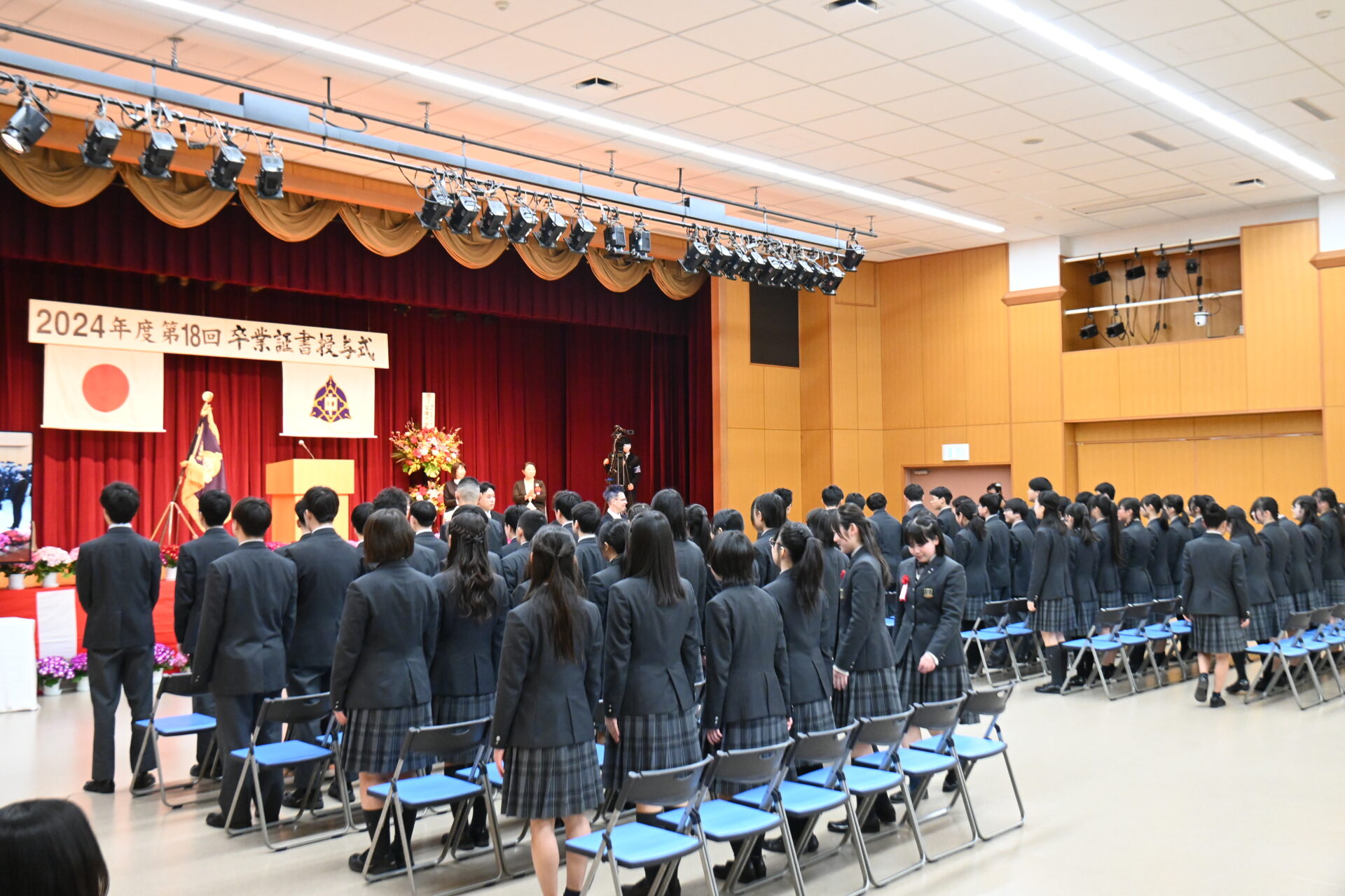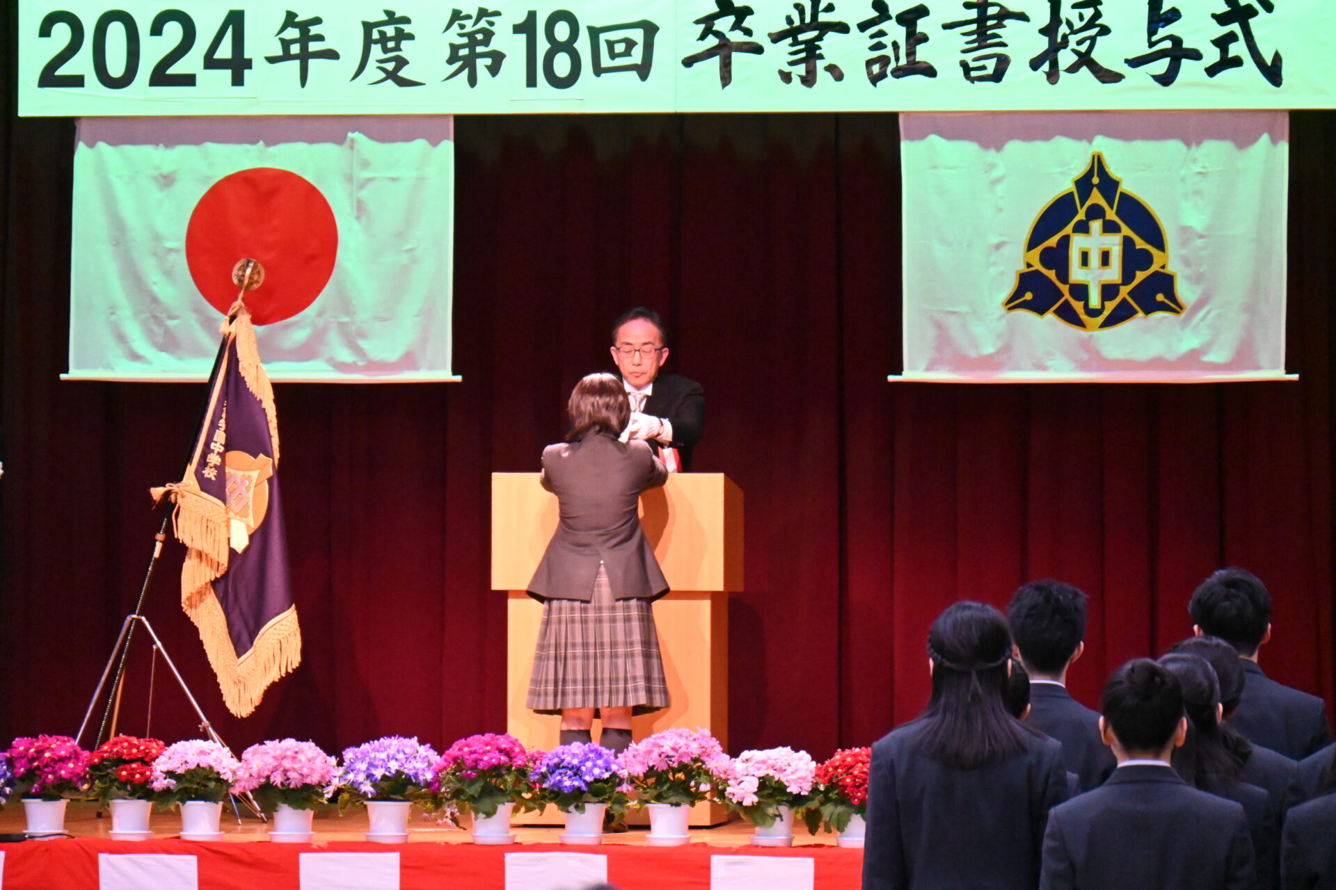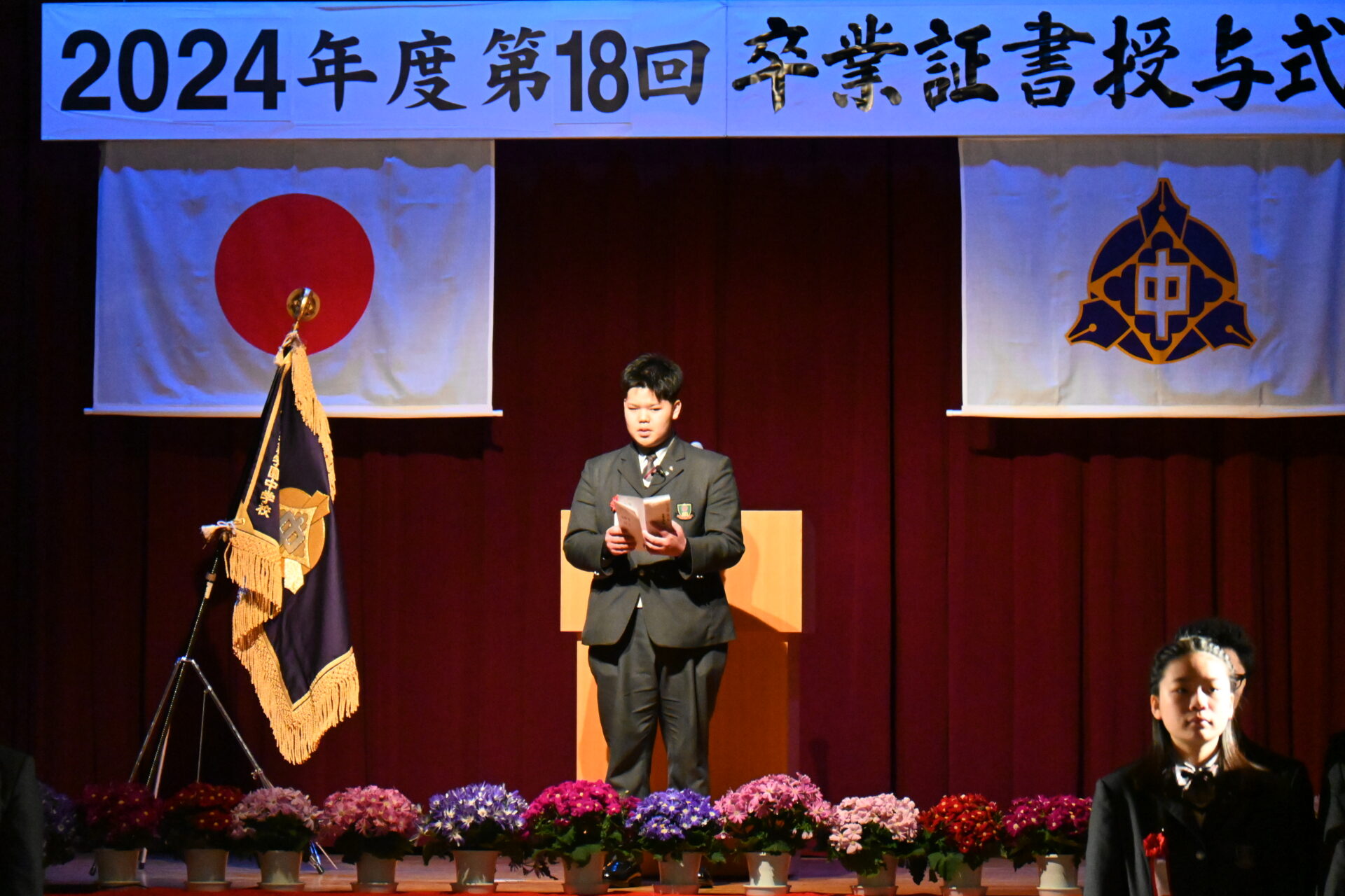 2025年3月8日(土)に2024年度第18回中学校卒業証書授与式を挙行しました。岡田慎一校長は「周囲への感謝を忘れずに行動して欲しい。輝かしい高校生活を心から願う」と63名の卒業生にエールを送りました。式典終了後はUJカフェで謝恩会を実施。和やかな雰囲気の中、卒業の宴を楽しみました。18期生の皆さん、卒業おめでとう!