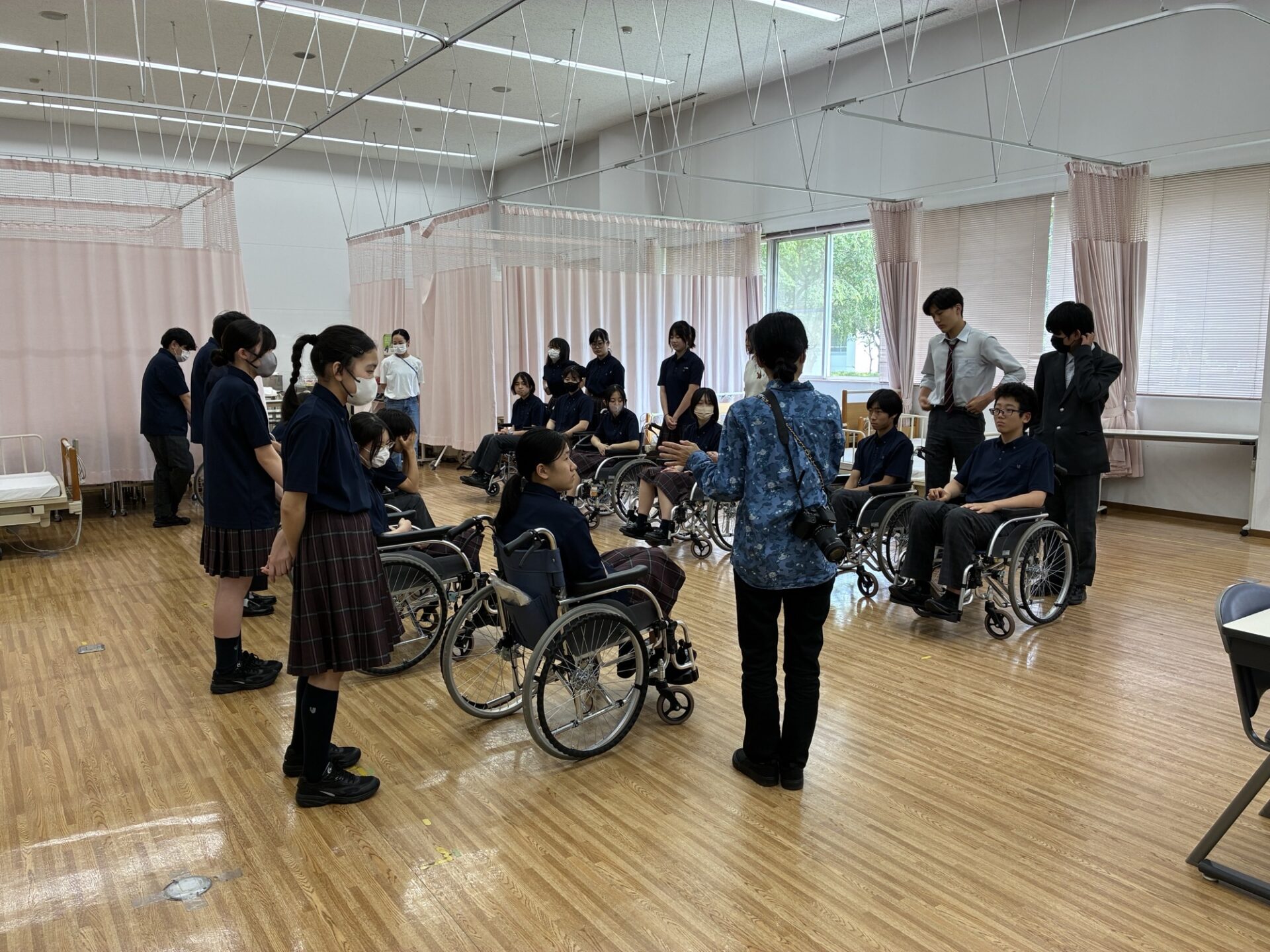2025年6月19日(木)、中学校2年生は本校併設校である浦和大学(さいたま市緑区)にて福祉体験を実施しました。障がいや高齢に伴う心身の変化について学び、それに寄り添う福祉の現場に触れることで、生徒たちは「思いやり」や「気配り」の大切さを実感しました。体験後には「周囲への目配りを意識するようになった」と感想を述べる生徒も多く、有意義な学びの時間となりました。