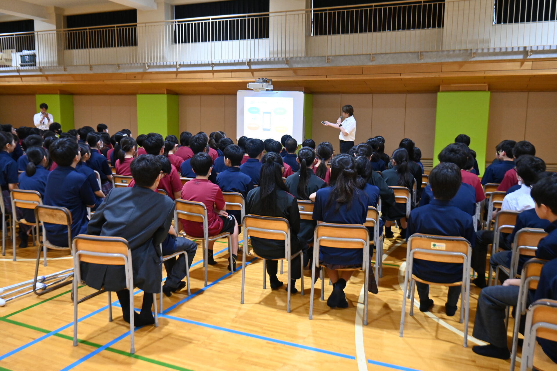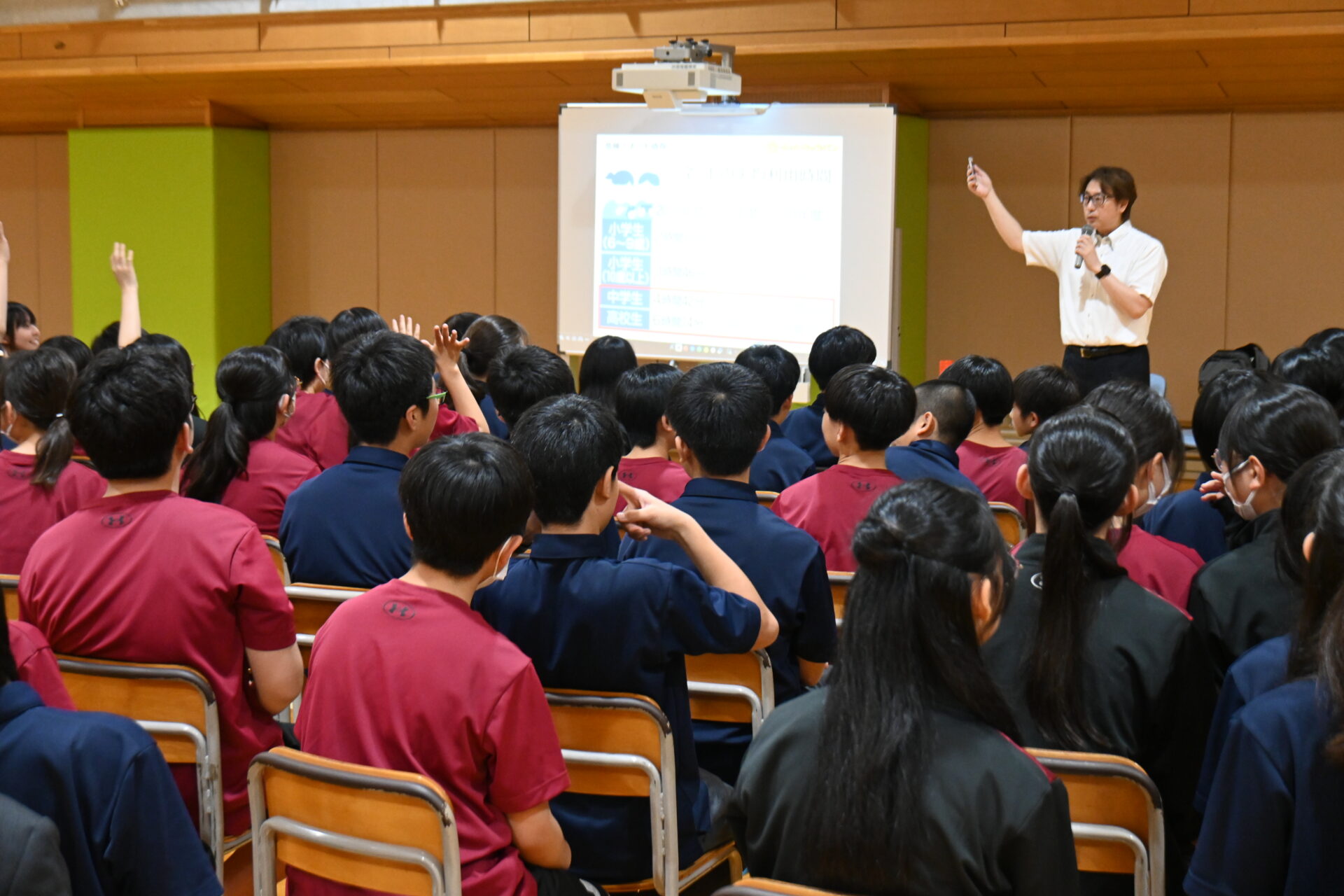 2025年7月16日(水)、中学1年生を対象に埼玉県ネットアドバイザーの黒川智章氏をお招きし、「スマホ・ネット安全教室」を行いました。SNSでのトラブルや個人情報流出、依存による生活への影響など、スマートフォンの便利さの裏に潜む危険について、実例を交えてわかりやすく講演いただきました。講演後、生徒からは「ネットは当たり前に使っていたけど、怖さを初めて実感した」、「軽い気持ちの投稿が人を傷つけることがあると知り、これからはもっと慎重に使いたい」といった感想が聞かれ、真剣に考えるきっかけとなったようです。今後も情報リテラシーを高め、安全にスマホと向き合える力を育てていきます。