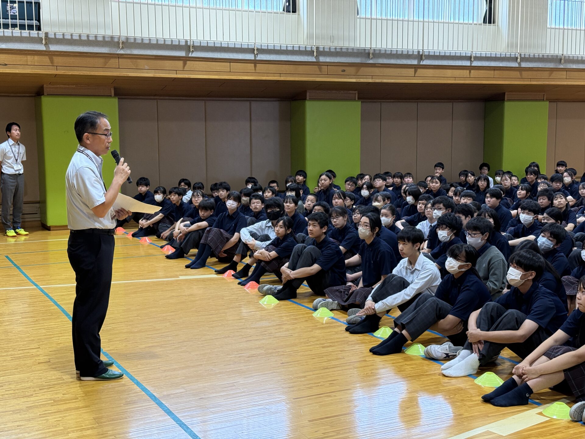 2025年7月19日(土)、第1学期終業式を行いました。式の冒頭では、今学期中に部活動などで優秀な成績を収めた生徒・団体の表彰を行い、生徒たちの努力と成果を称えました。その後、岡田慎一校長より講話がありました。夏休みを迎えるにあたり、特にスマートフォンとの付き合い方やSNSの使い方について述べ、SNS上でのトラブルやいじめについても言及がありました。いじめの定義を踏まえ、「言った側は水に流したつもりでも、言われた側には石に刻まれる」という言葉を引用し、人を傷つけるような言動は慎むこと、万一相手を不快にさせた場合には素直に謝ることの大切さを伝えました。