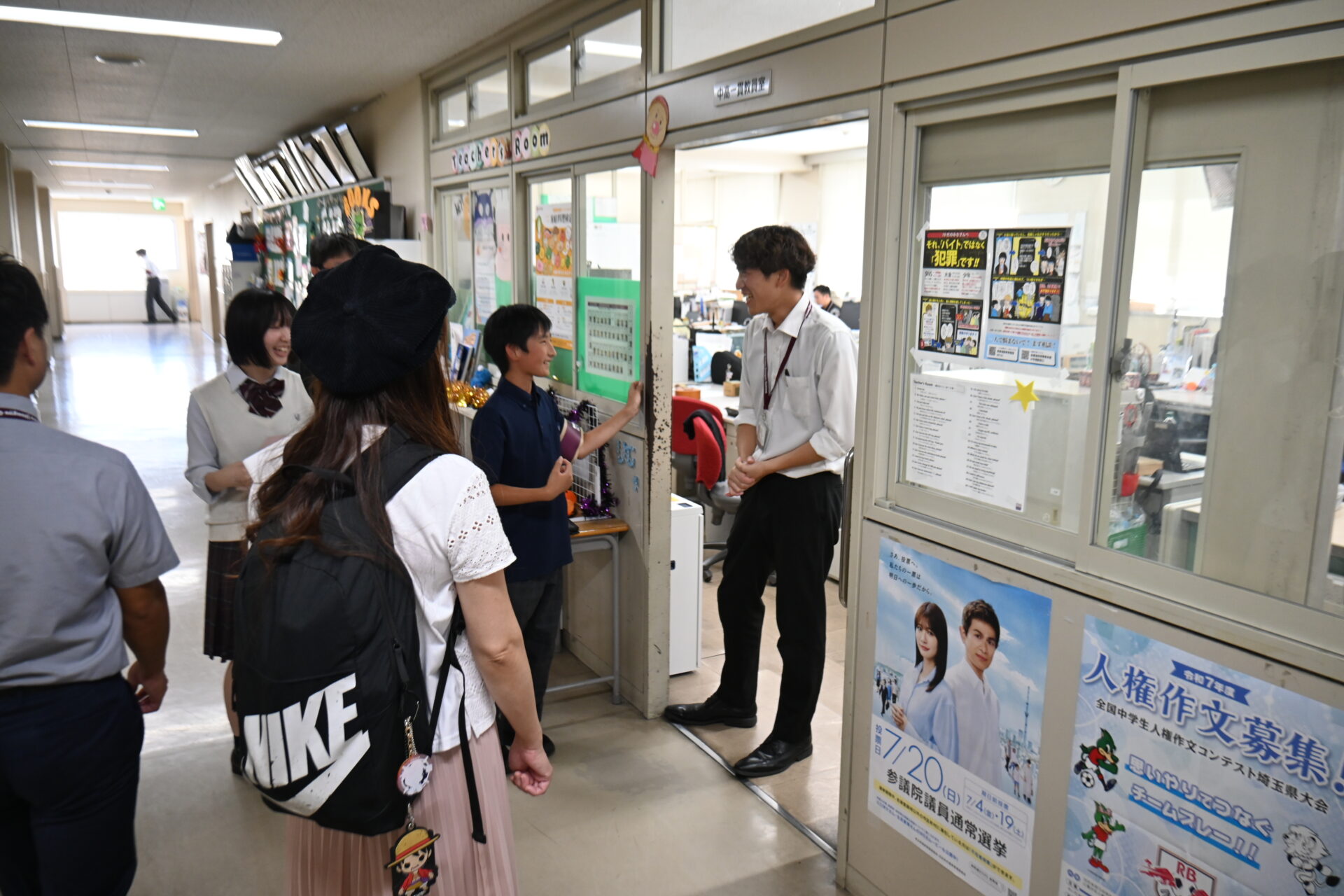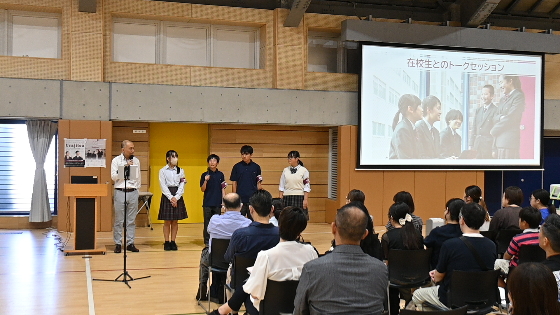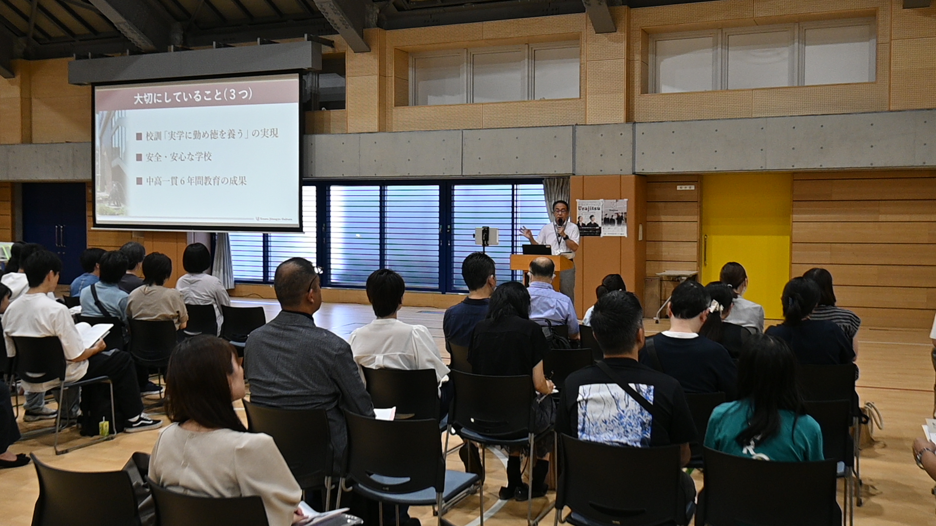 2025年9月27日(土)、第2回学校説明会を開催いたしました。学校生活やイマージョン教育、募集要項についての全体説明の後、在校生による校内見学を実施しました。見学中には受験生や保護者の皆さまから在校生へ多くのご質問をいただき、生徒たちも一つひとつ丁寧に答えていました。参加された保護者の方からは、「大宮ソニックでの説明会でとても良い印象を持ち、実際に学校も見てみたいと思って参加しました。訪問してみると、生徒を大切にしてくれる学校だと感じました。」とのご感想もいただきました。次回の説明会は 10月16日(日) に開催いたします。当日は、入試問題作成担当者より、来年1月実施予定の入試について、傾向と対策をご説明いたします。