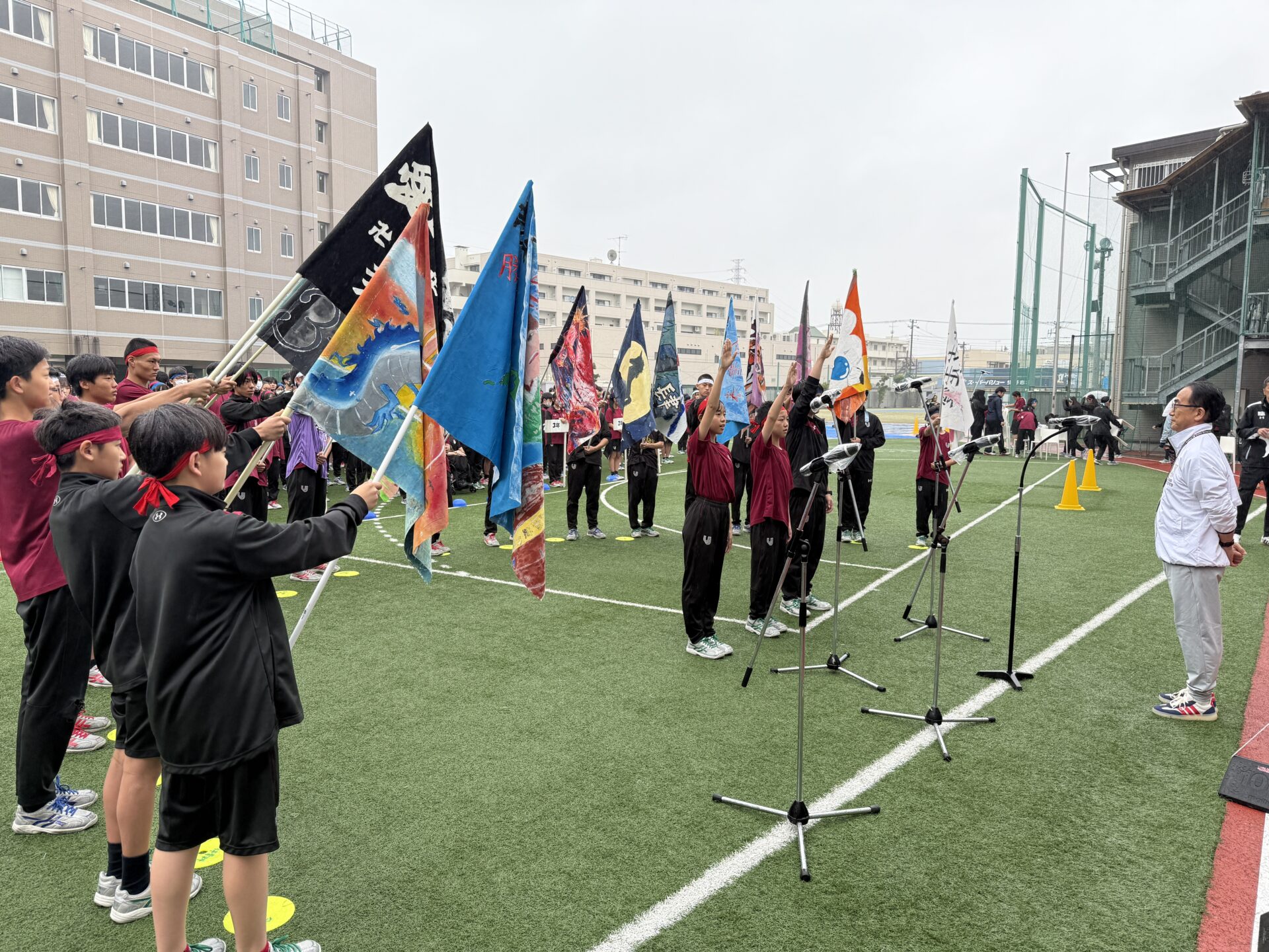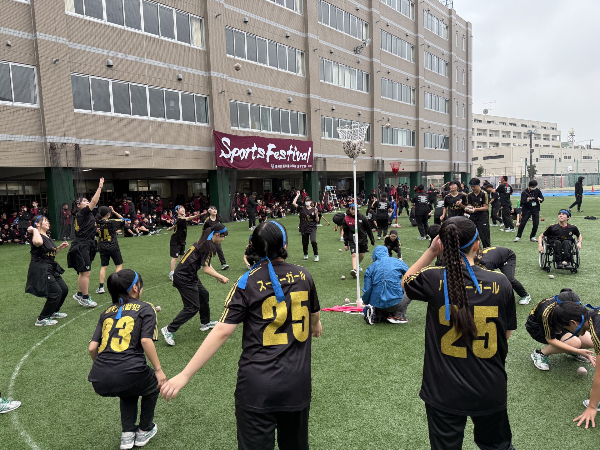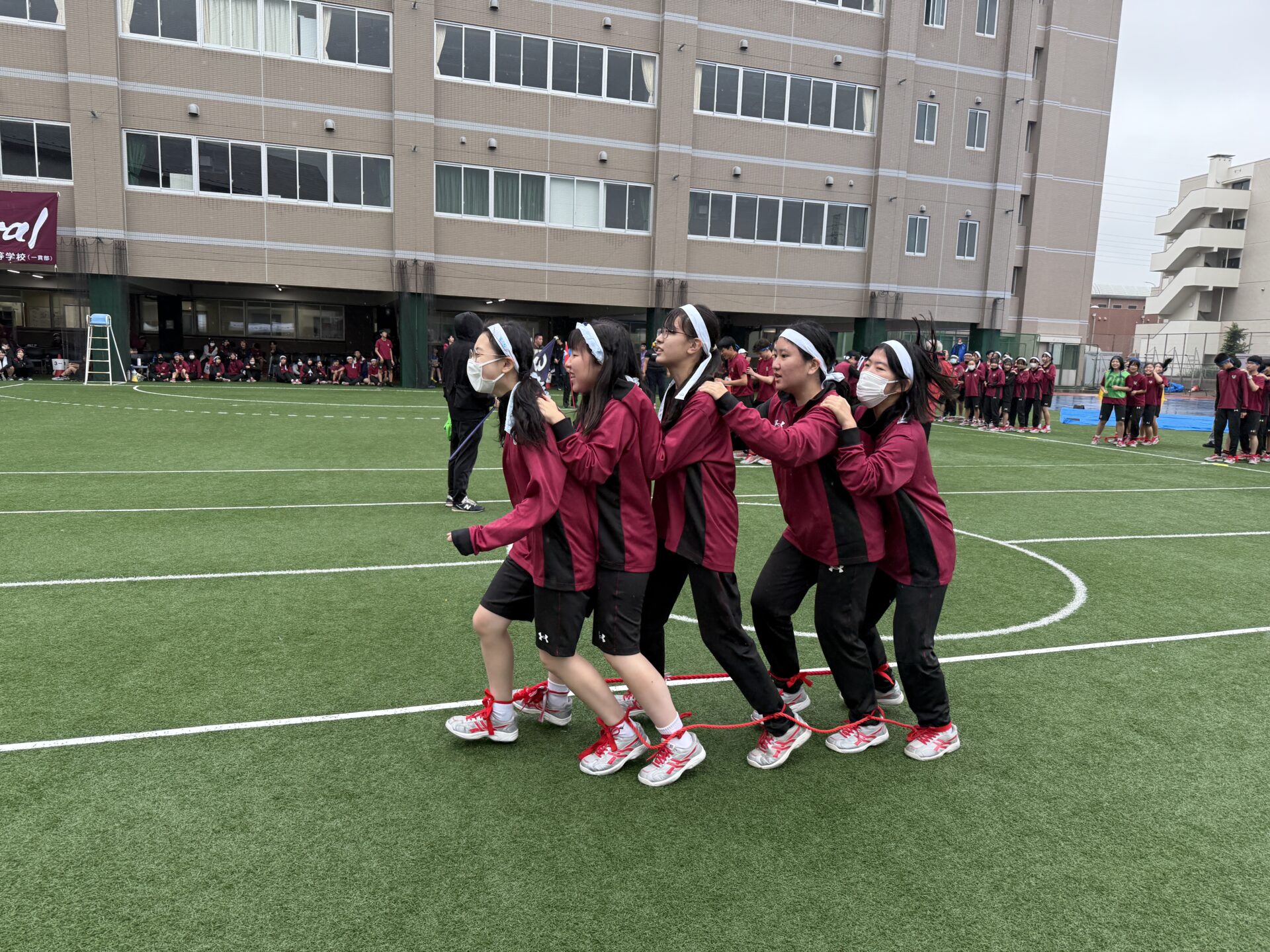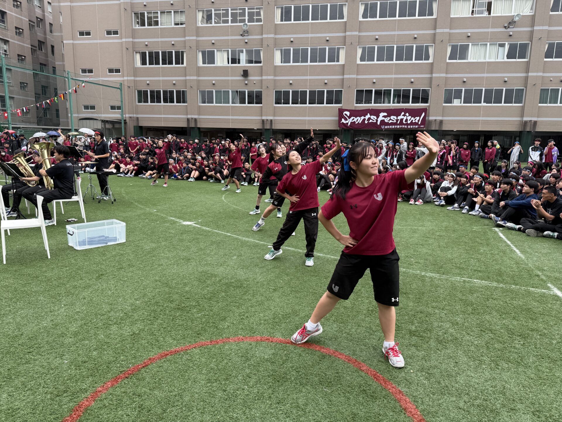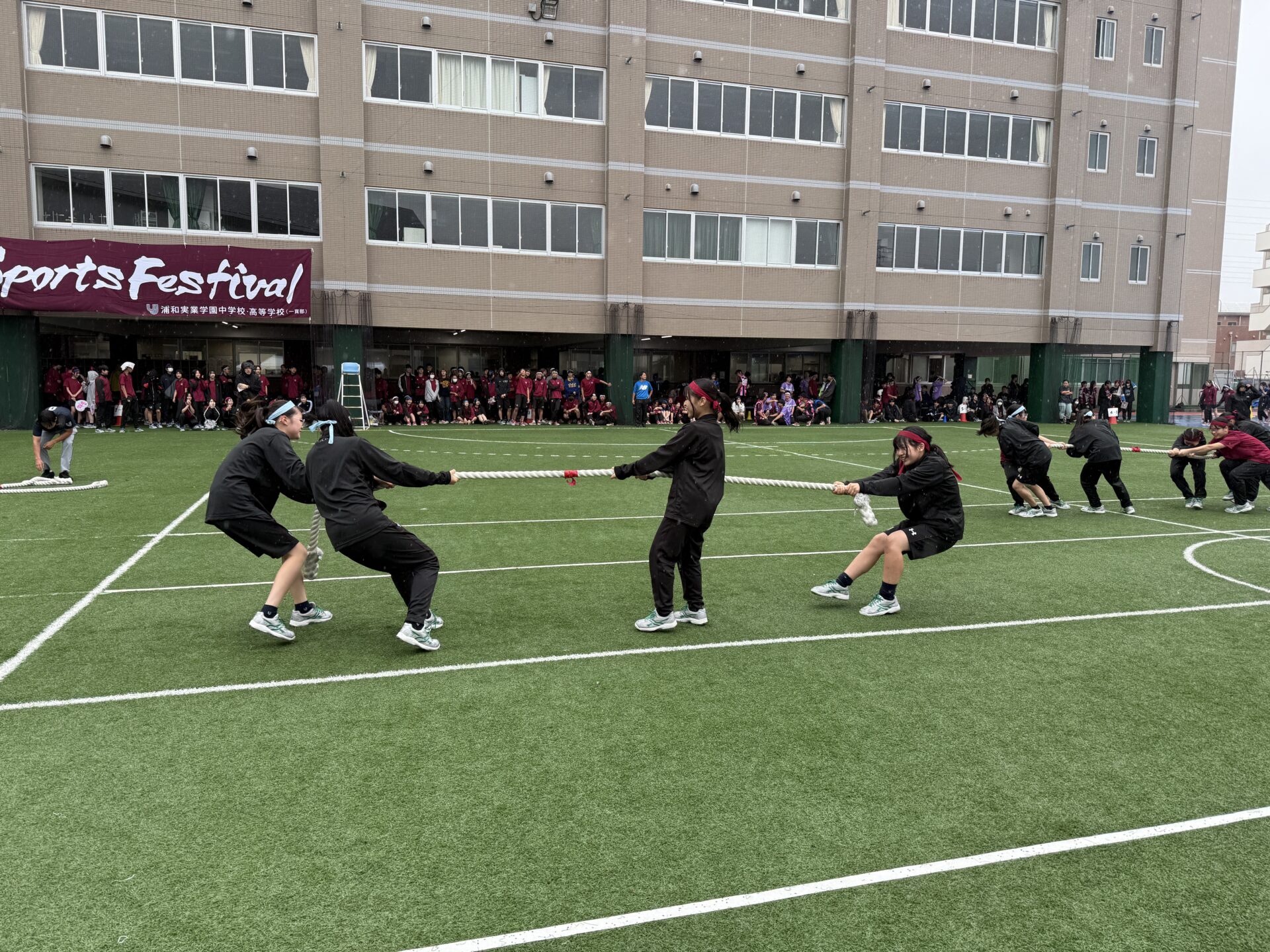 2025年10月11日(土)、本校グラウンドにてスポーツフェスティバルを開催しました。あいにくの天候により、当初予定していた一部の競技内容を変更しての実施となりましたが、生徒たちは最後まで笑顔と活気にあふれ、競技や応援に全力を尽くしていました。グラウンドにはクラスメイトを励ます声や歓声が響き渡り、どの学年も一体感のある素晴らしい時間となりました。また、雨天の中にもかかわらず、多くの保護者の皆様にご来校いただき、温かいご声援を賜りましたこと、心より感謝申し上げます。
