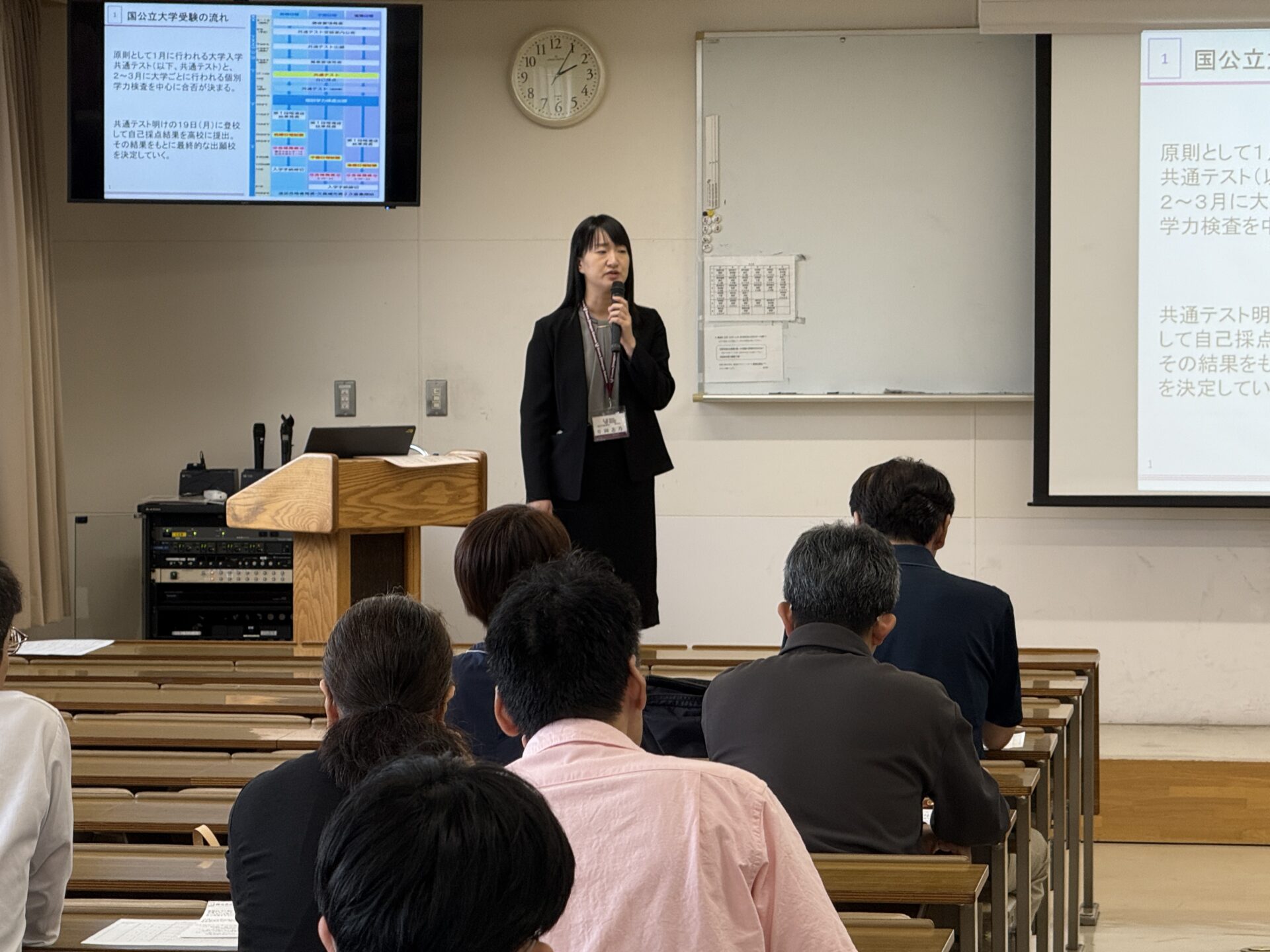 また、10月18日(土)には、一般選抜入試を受験する生徒の保護者を対象に「出願に関する保護者会」を開催しました。保護者会では学年教員より出願に関する手続きや注意点、過去の成功例・失敗例などを具体的に説明し、保護者の皆様が安心して出願準備を進められるよう情報を共有しました。