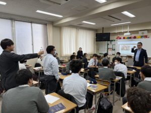 2025年10月27日(月)、中学3年生のイマージョンクラスを対象に、テネシー大学チャタヌーガ校(UTC)のTakeo Suzuki博士による特別講義が行われました。本講義は海外留学・大学進学支援プログラム(SAP)の一環として実施され、生徒たちは「図形を説明する」ペアワークに挑戦。身振り手振り禁止のルールのもと、英語と日本語で試行錯誤を重ね、表現力やコミュニケーション力を磨きました。その後、Suzuki博士からは活動の振り返りを通じて、言葉を用いたコミュニケーションの難しさや大切さ、そして英語学習の工夫について熱く語っていただきました。生徒たちにとって、大きな刺激と学びにあふれた有意義な時間となりました。