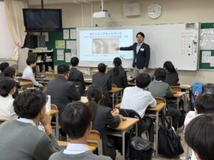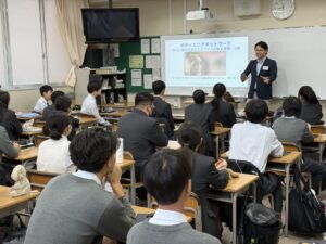 2025年11月5日(水)、中学2年イマージョンクラスを対象に(株)留学情報館の山岸幸之助氏を講師にお迎えし、「世界で活躍できる人材になるために知っておくべき3つのこと」をテーマとした講演が行われました。本講演は海外留学・大学進学支援プログラム(SAP: Study Abroad Plus)の一環として実施されたものです。一貫部では留学情報館様のご協力のもと、海外留学や大学進学を視野に入れた継続的なサポートを行っています。当日は生徒たちが真剣な眼差しで講演に耳を傾け、「海外大学進学がより身近に感じられた」「自分にもチャンスがあると思えた」など、前向きな感想が多く聞かれました。生徒一人ひとりが将来の可能性を広げる貴重な時間となりました。