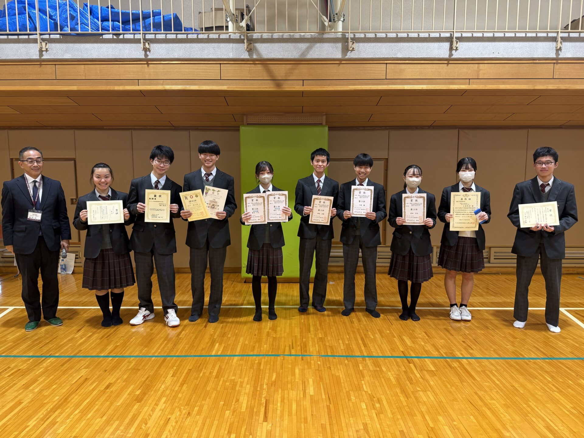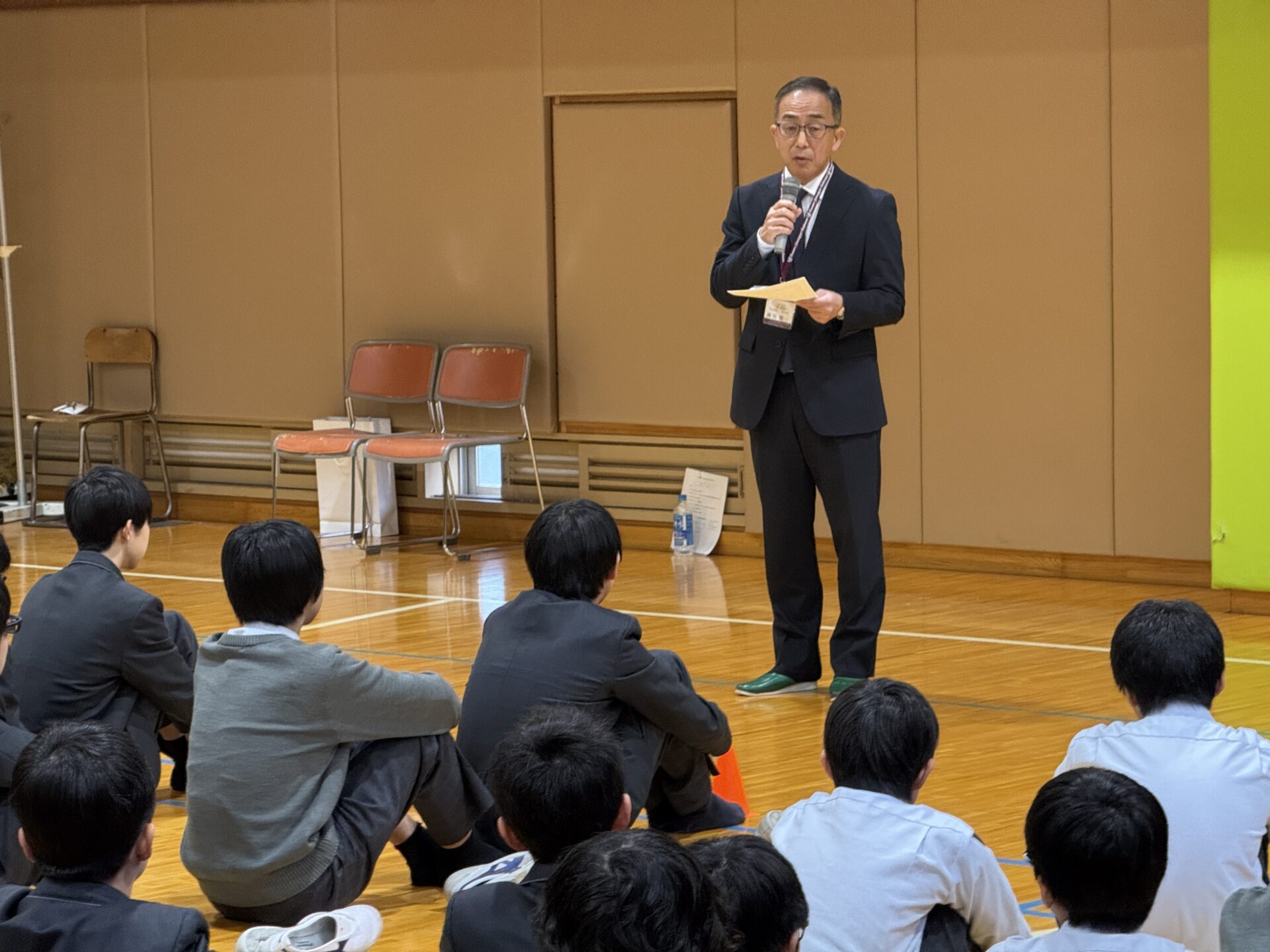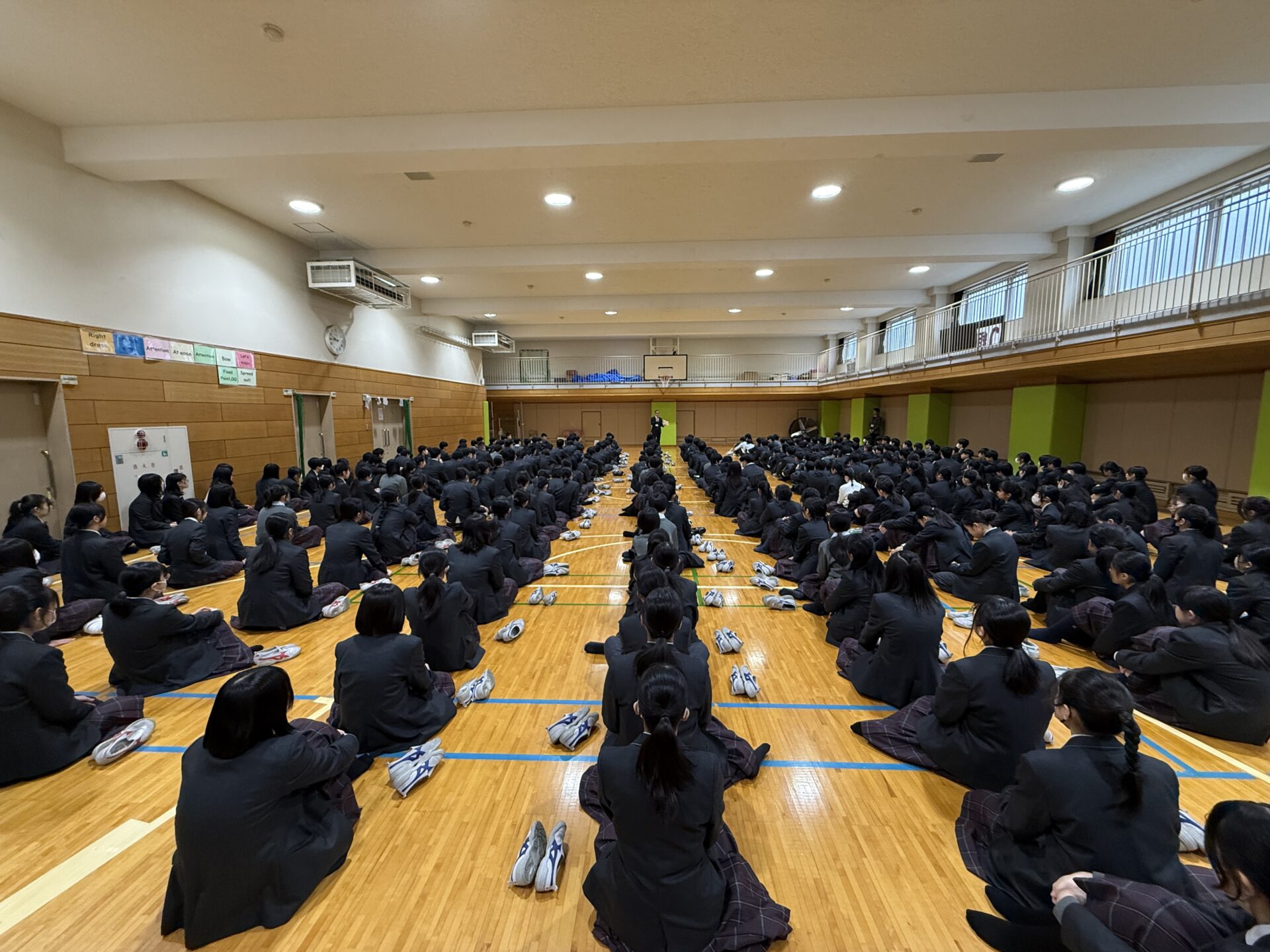 2025年12月24日(水)、第2学期終業式を行いました。式の冒頭では、今学期中に部活動等で優秀な成績を収めた生徒・団体の表彰を行い、生徒たちの努力と成果を称えました。その後、岡田慎一校長より講話があり、冬休みを前にスマートフォンやタブレットとの正しい付き合い方について触れられました。画面の向こう側にも感情を持った人がいること、強力な道具であるからこそ判断力が必要であること、データは簡単に消えないことなどに触れ、スマートフォンを自分と他人を守るための道具として使ってほしいとのメッセージが生徒たちに伝えられました。