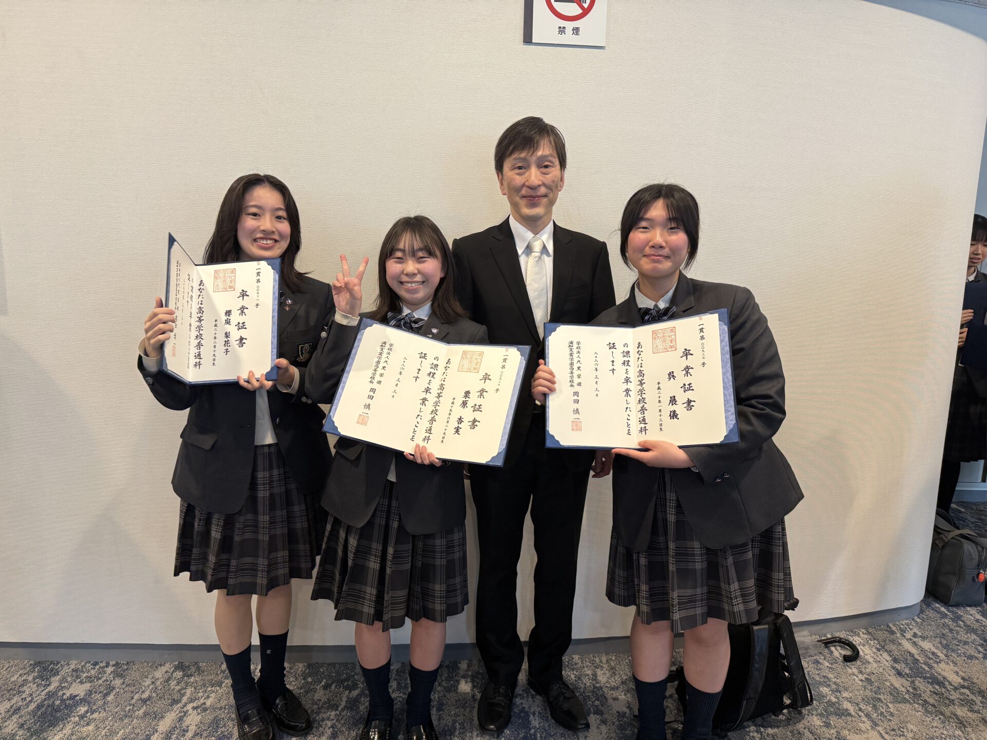 2026年3月3日(火)、春のやわらかな雨が降る中、大宮ソニックシティにおいて2025年度卒業証書授与式が挙行されました。式では、岡田慎一校長が卒業生に向けて式辞を述べました。この学年の生徒たちは新型コロナウイルス禍の中で入学し、日々の学校生活が決して当たり前ではないことを実感しながら、多くの制限を乗り越えてきました。その歩みを振り返りつつ、谷川俊太郎さんの詩「生きる」を引用し、健康であること、学べることの尊さを伝えました。そして、「当たり前」の対義語は「ありがとう」であると語り、感謝の気持ちを胸に、それぞれの未来へ力強く歩んでほしいと励ましました。会場は温かな祝福に包まれ、卒業生一人ひとりの新たな門出を祝う厳粛な式となりました。卒業生の皆さんの前途が洋々たるものであることをお祈りするとともに、これまで生徒たちを温かく見守り、支えてこられた保護者の皆さまに心より感謝申し上げます。