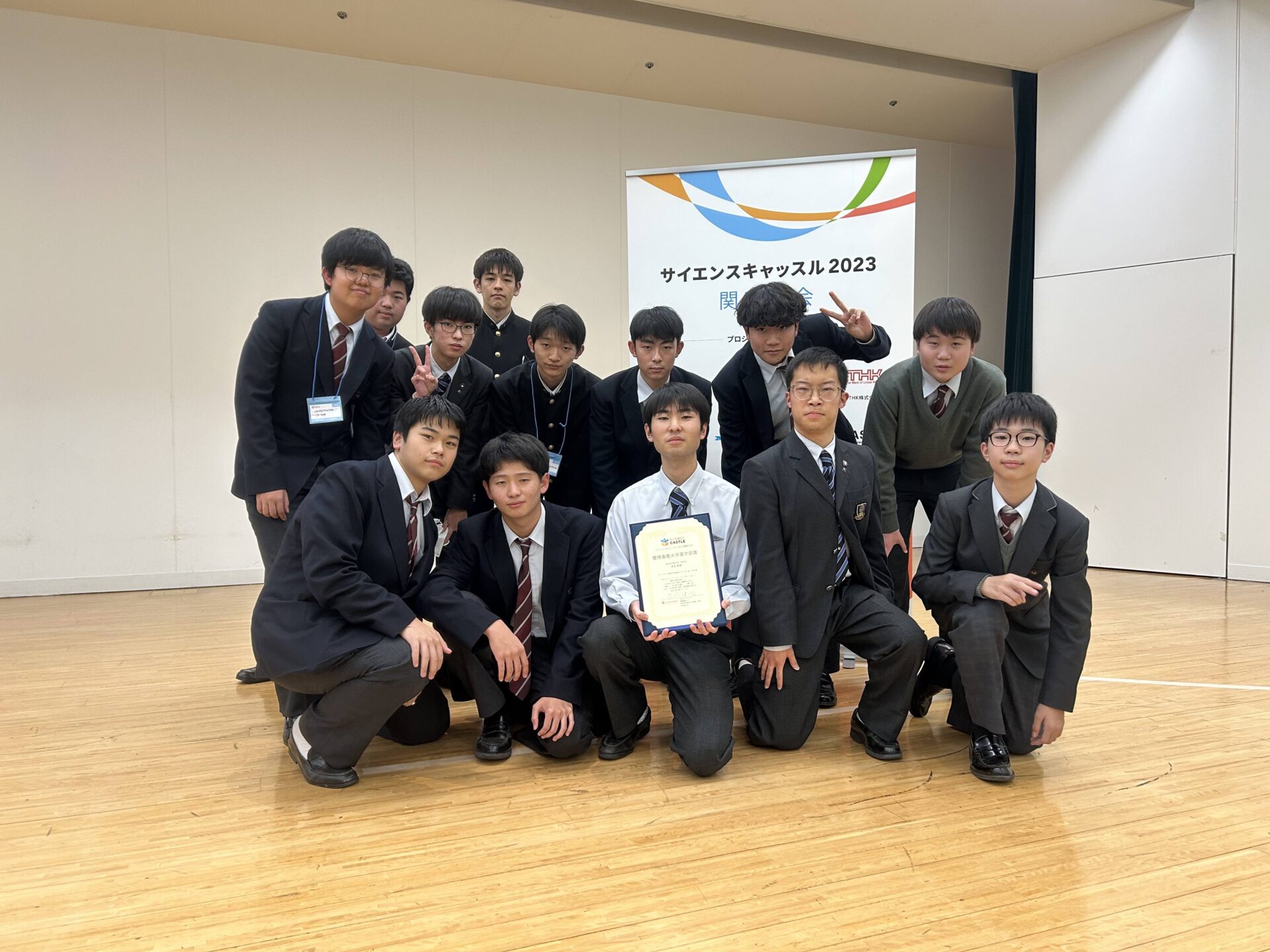 2023年12月2日(土)に昭和女子大学附属中学校・高等学校において、サイエンスキャッスル2023関東大会が開催され、口頭発表部門で『ガクアジサイの装飾花が長期間にそり反り返って残る謎』を発表し、優秀賞と慶應義塾大学薬学部賞をダブル受賞しました。審査員の花岡健次郎先生から「仮説と検証、そして得られた結果をきちんと考察し、それが意図しないことであっても、新しい仮説を設定していくところが素晴らしい」とのコメントをいただきました。その他にもポスター発表部門で『外来種のカラドジョウが在来種のドジョウに及ぼす影響』、『こおろぎの「外敵からの逃避行動」に関する研究』の発表を行い、それぞれ奨励賞を受賞しました。