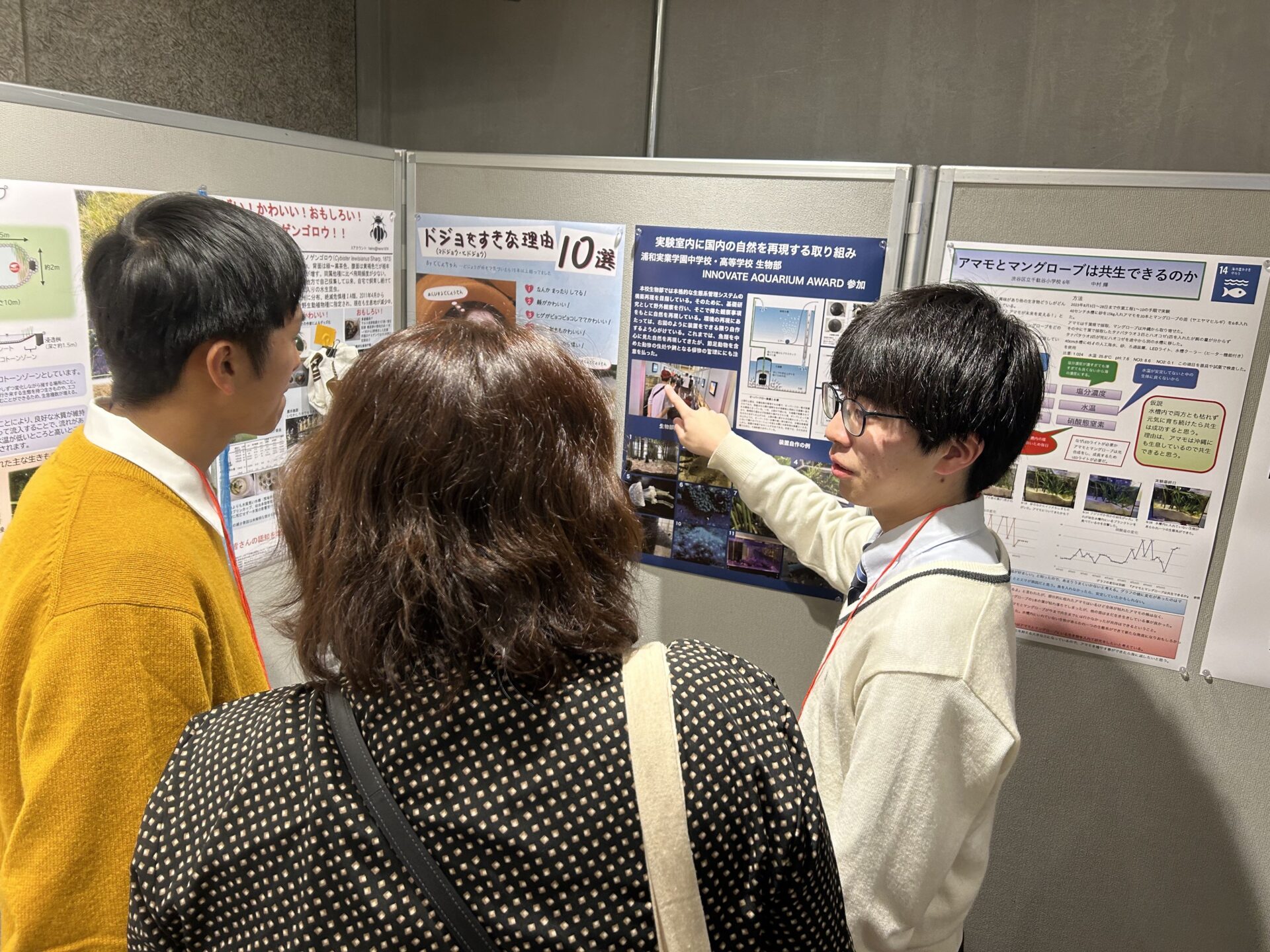 また同日、渋谷の   100BUNCHでは、イノベートアクアリウムアワードが開催され、egg部門に『高麗川の自然の一部を切り取ったような水槽の作成』、award部門に『実験室内に国内の自然を再現する取り組み』を発表し、好評を得ました。