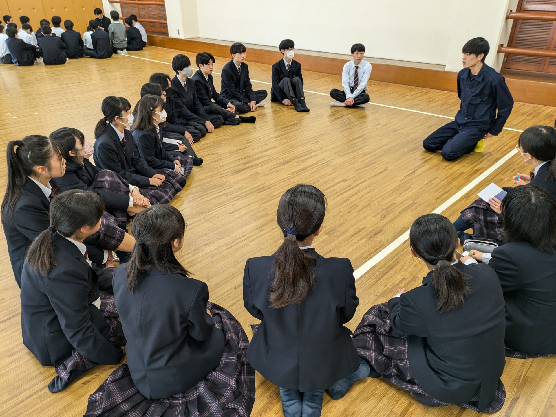 10月31日(木)に、特進部1年生・一貫部4年生を対象としたキャリア教育支援「Mirai school」が開催されました。当企画は、未来を担う高校生が自己のキャリアを思い描くきっかけとなるように、住友商事社員の「多様な価値観」と「経験」を伝えるキャリア教育プログラムです。当日は講師として2名の社員の方々にお越しいただきました。プログラムは講師の学生時代、仕事を通して感じられる社会の変化などのお話をうかがいながら、生徒のワークタイムと発表も交えて進められました。2名の講師の経験談はそれぞれでありながらも、「次世代を育てたい」「他人と比べず、己を信じて前進することが大切」といったことを異口同音に唱えられていました。2時間のプログラムではありましたが、時間の過ぎゆくのがとても速く感じられ、生徒には貴重な経験になりました。将来の自分について真剣に考え、一人ひとりの進路計画に結びつけてもらいたいと思います。
