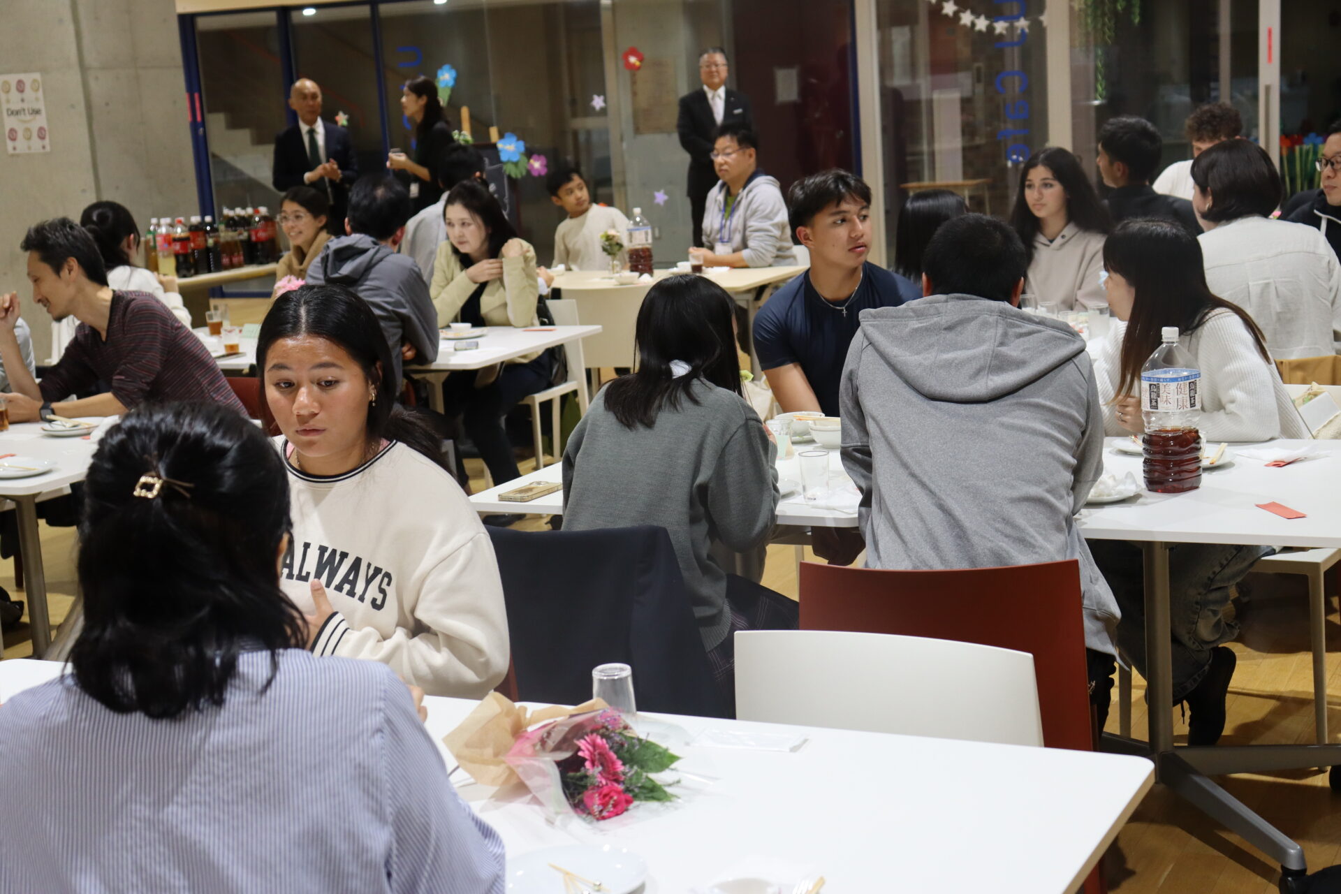 2024年11月2日(土)に本校の姉妹校であるセントジョセフ中学校・高等学校のマイレキパパ校長先生、マサエゴメス先生と14名の生徒さんが教育・文化交流のため来日しました。成田空港到着後、本校までバスで移動してもらい、『歓迎夕食会~welcome party~』をUJカフェにて実施しました。最初はお互いにやや緊張している様子でしたが、徐々に和やかな雰囲気になり、会話もはずんでいました。11/5には姉妹校提携調印式と歓迎会が実施されます。セントジョセフ中学校・高等学校の皆さんには充実した2週間を過ごしてもらいたいです。