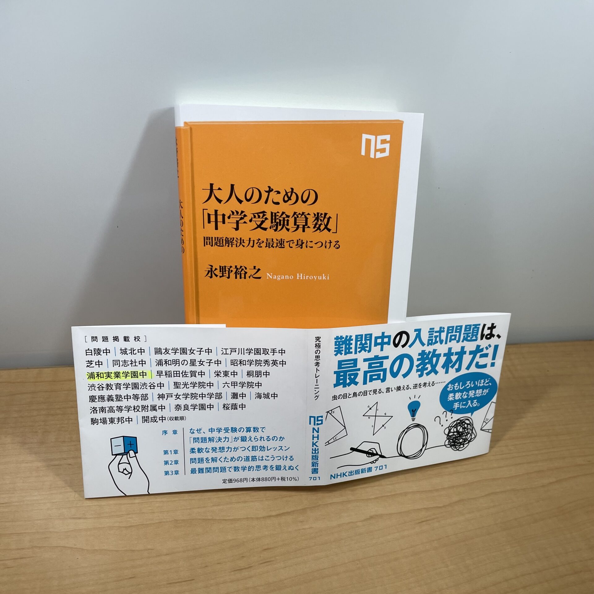 「大人のための『中学受験算数』問題解決力を最速で身につける」永野裕之氏著(NHK出版新書・2023年6月10日発行)に本校の入試問題が掲載されました。掲載されたのは算数の数列の入試問題です。是非、書店でお手に取ってご覧ください。
