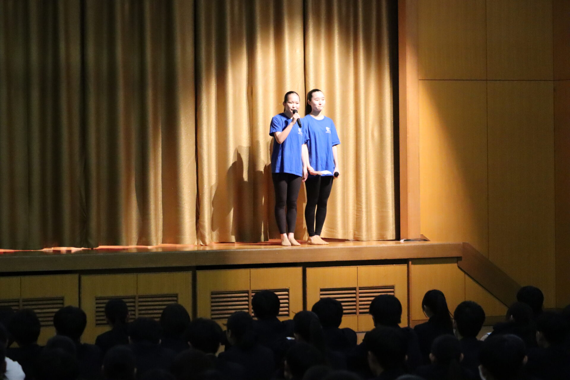 4月15日(月)に新入生歓迎会が生徒会主催で行われました。主に部活動紹介がスチューデントホールとスポーツスタジオに分かれて行われ、新入生は様々な部活動を見ながらどの部活に入部しようか目を輝かせながら説明を聞いていました。早速放課後には、見学をしている生徒が見られました。