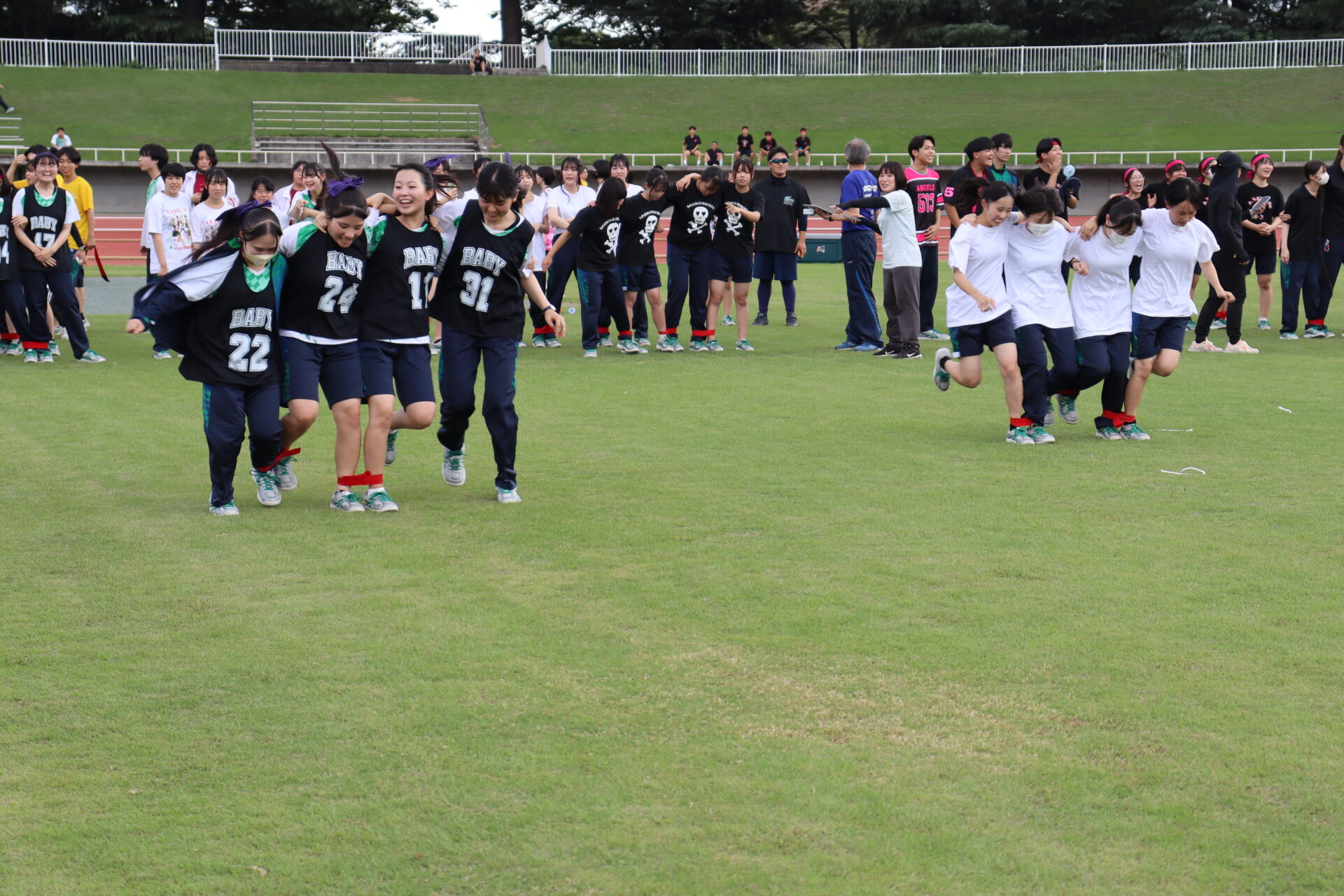 10月7日(月)上尾陸上競技場において、3年生による体育祭が行われました。理事長や父母の会会長が激励に訪れてくれる中、高校生生活最後の行事に臨みました。生徒全員が活躍できるような種目ばかりで、休む事無く集中して取り組んでいました。男女協力して行った玉入れと大縄跳び。息を合わせて行った4人5脚。クラス全員で応援したリレーと綱引き。どれも全力で行っていました。優勝は3年F組 準優勝は3年C組 3位は3年3組という結果でした。