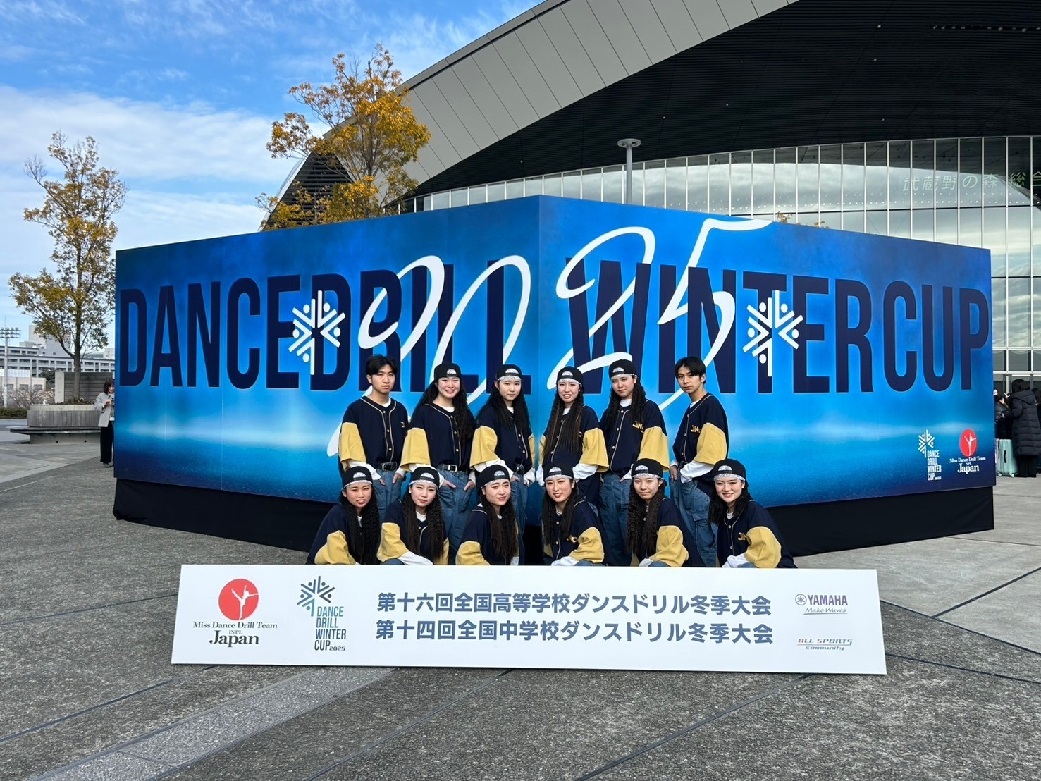 1月12日(日)に武蔵野の森総合スポーツプラザにて行われた、第16回全国高等学校ダンスドリル冬季大会に出場しました。初の全国大会出場ということもあり、不安や緊張を感じていましたが、全国大会優勝を目標に互いに励まし合い練習してきました。本番では、持てる力すべてを出し切った最高のパフォーマンスを見せてくれました。