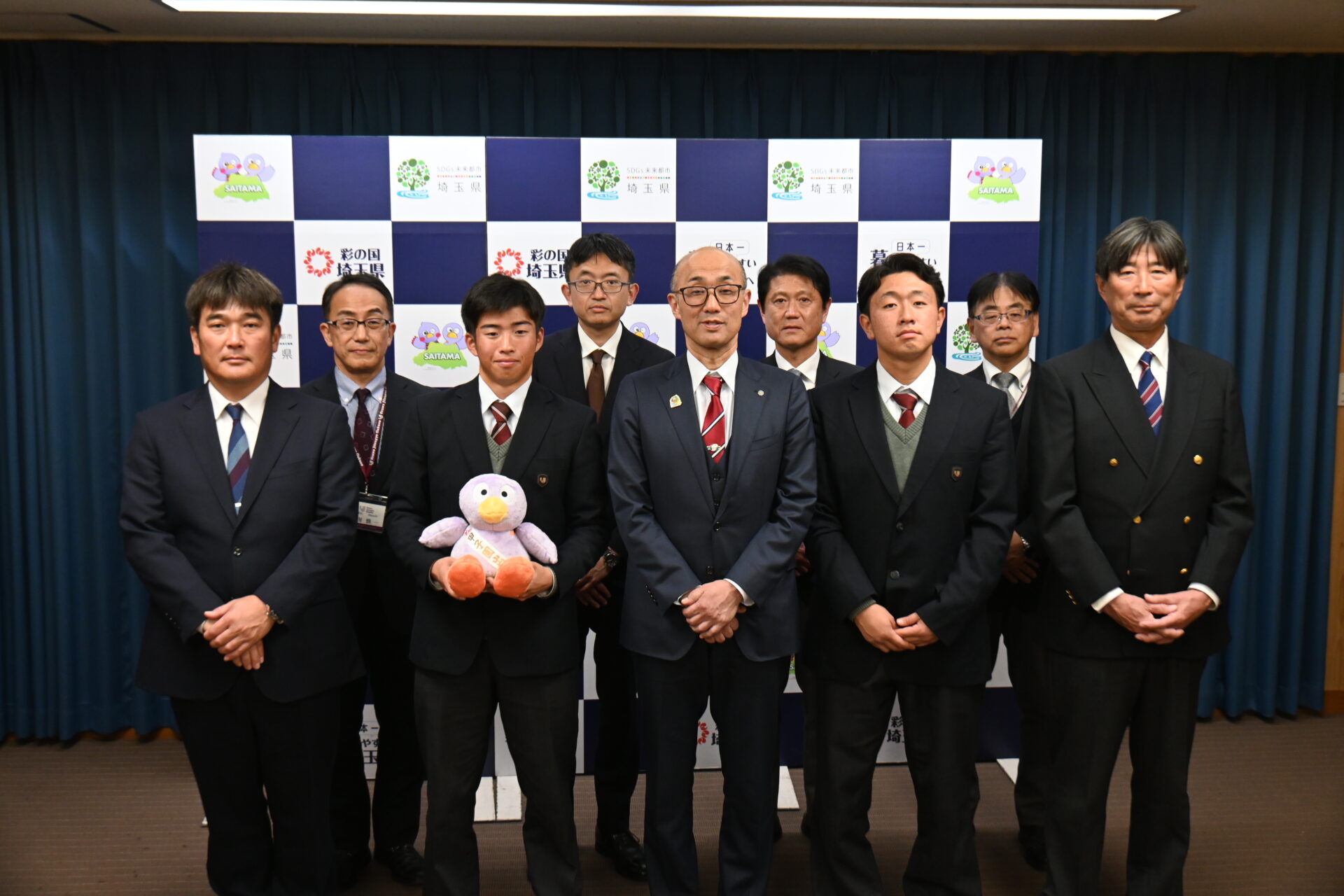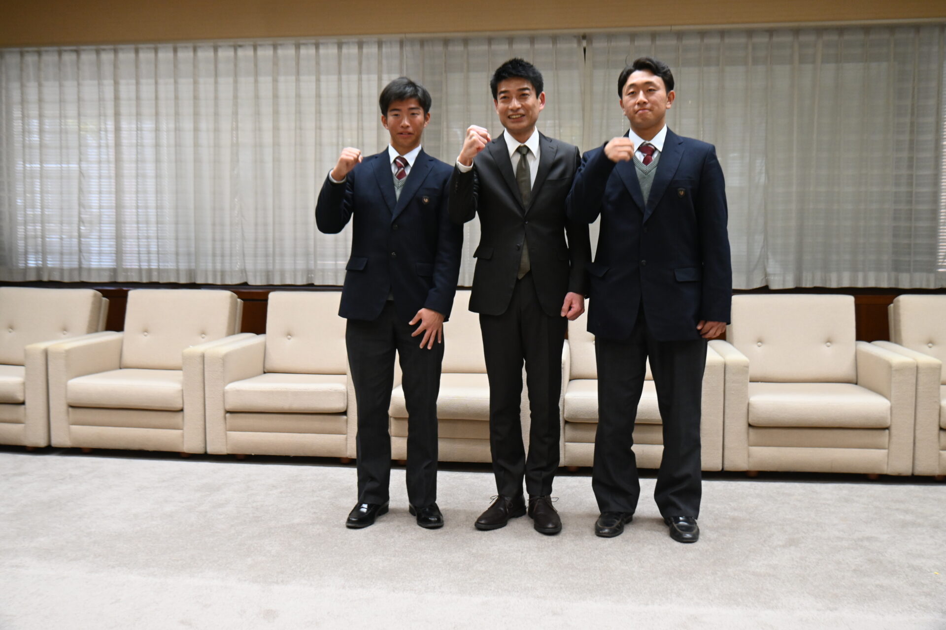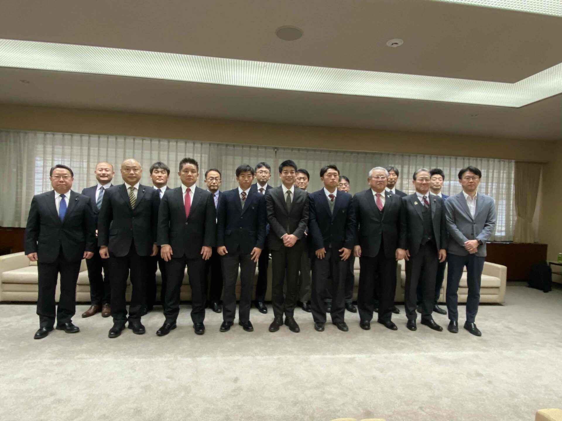 ご対応いただいた埼玉県副知事 堀光敦史様、県議会議長 齋藤邦明様、野球議連会長 田村琢実様をはじめとした野球議連の方が、教育長 日吉 亨様、埼玉県学事課 総務部長 三須 康男様 等、多くの方から温かい激励のお言葉を賜り、誠にありがとうございました。