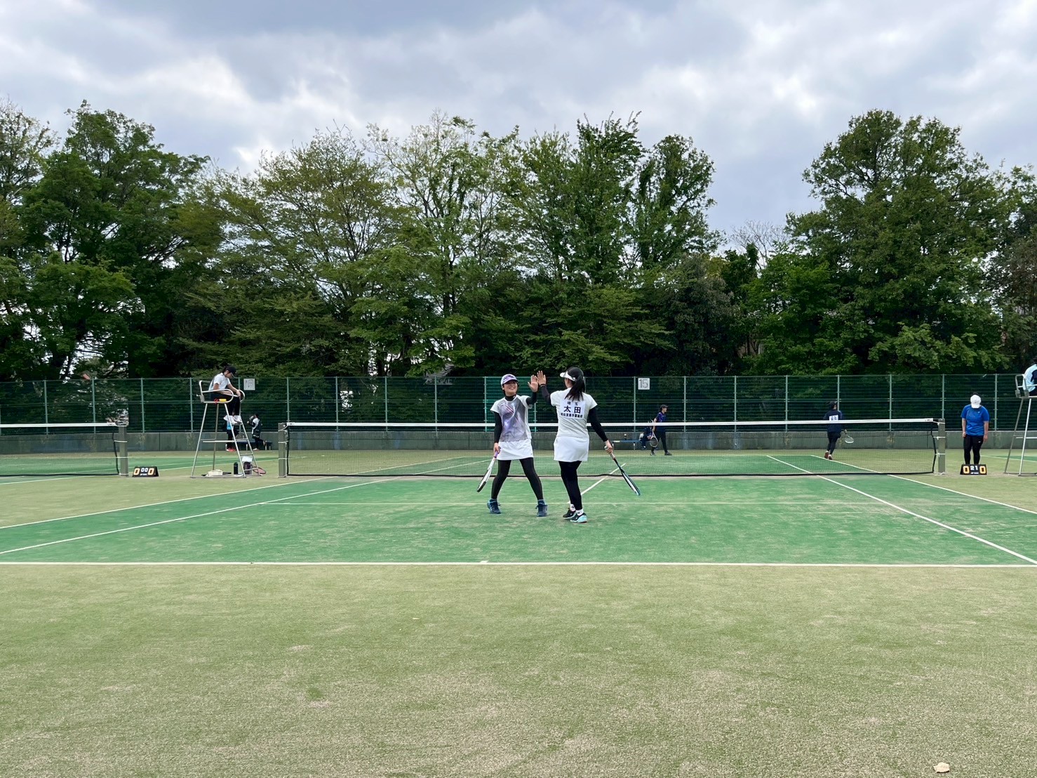 4/22・23において大宮第二公園テニスコートで行われた関東大会南部地区予選個人戦において,松苗はなか・片岡怜奈ペア,関根ゆずな・岸本夏歩ペア,高茂梨々花・中嶋莉音ペア,太田那奈・緑川沙英ペア,白土優恵・松浦沙羽ペアの計5ペアがそれぞれ予選を勝ち抜き,5/4に熊谷で行われる県大会に進出することとなりました。