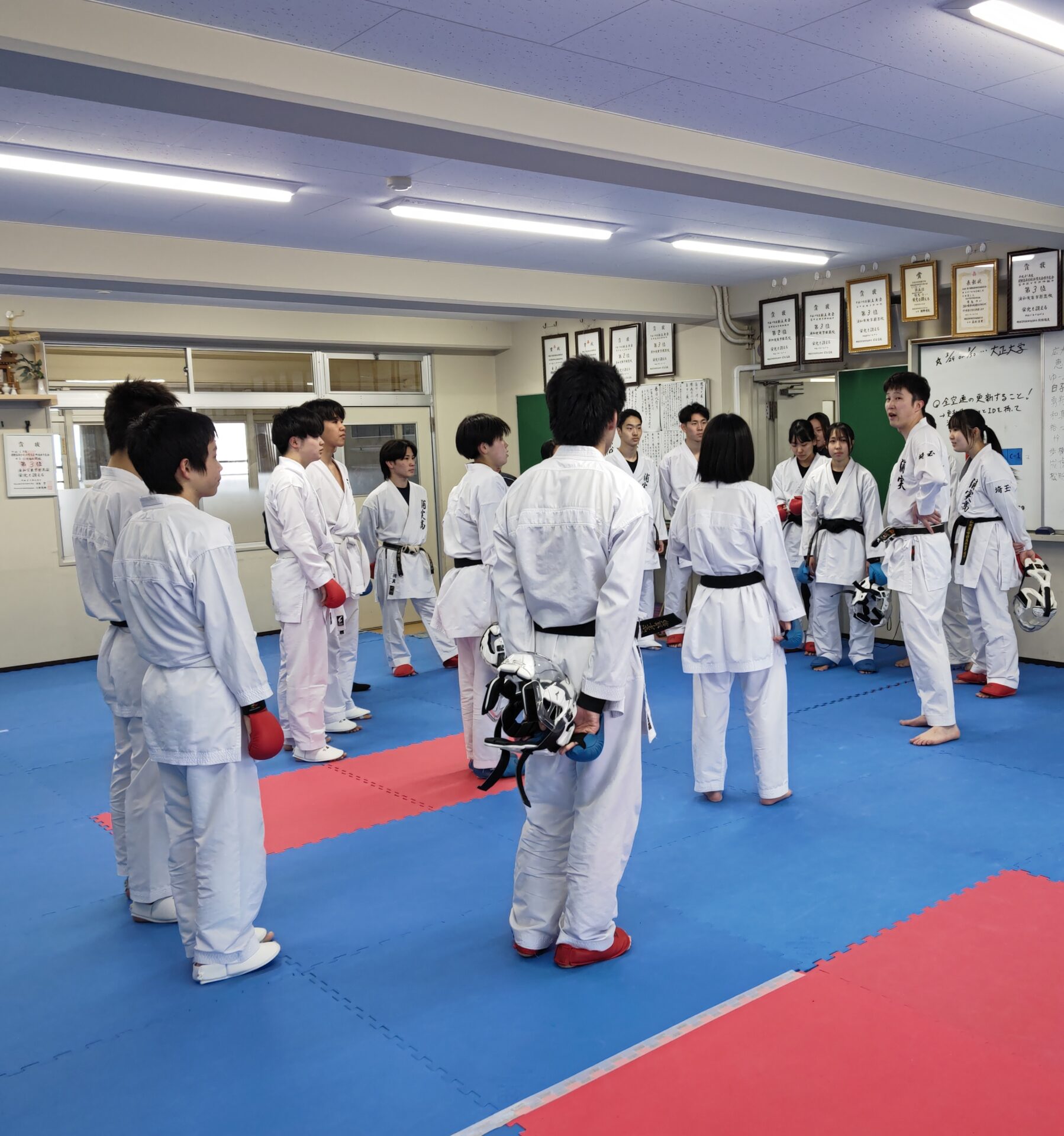3月9日に6号館5階空手道場にて空手道部三送会を実施しました。先日卒業した3年生と久しぶりに練習をしたことで、各部員は大きな刺激を受けていました。先輩たちが受け継いできた浦実空手道部の伝統を守っていけるよう、部員・顧問ともに日々精進してまいります。
