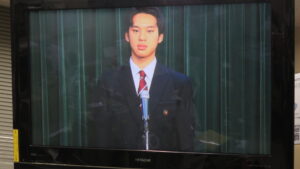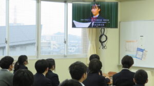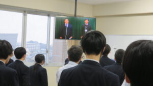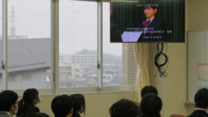 ③校長式辞 各行事が賑わったこと、受験生への激励、SNSの扱いに責任を持つこと、勉学や部活動に益々打ち込んでもらいたいことなどが話されました。